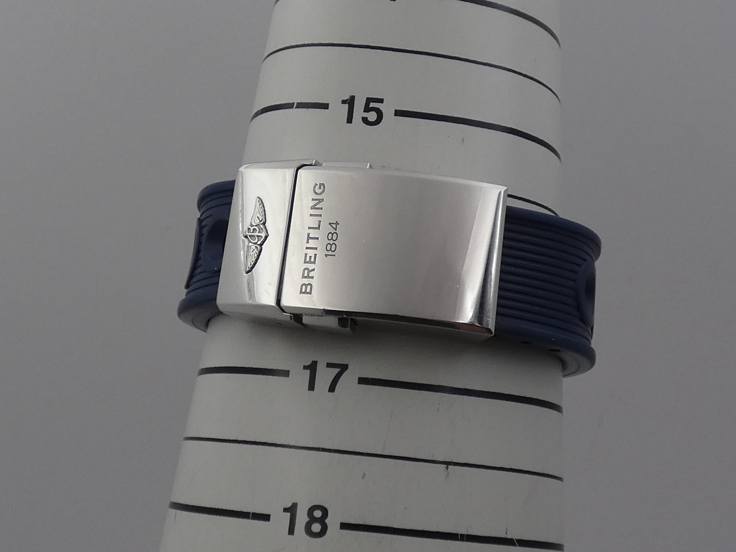 Cinturino: blu,in gomma, traforato, originale Breitling, regolabile tramite i pulsantini laterali della chiusura