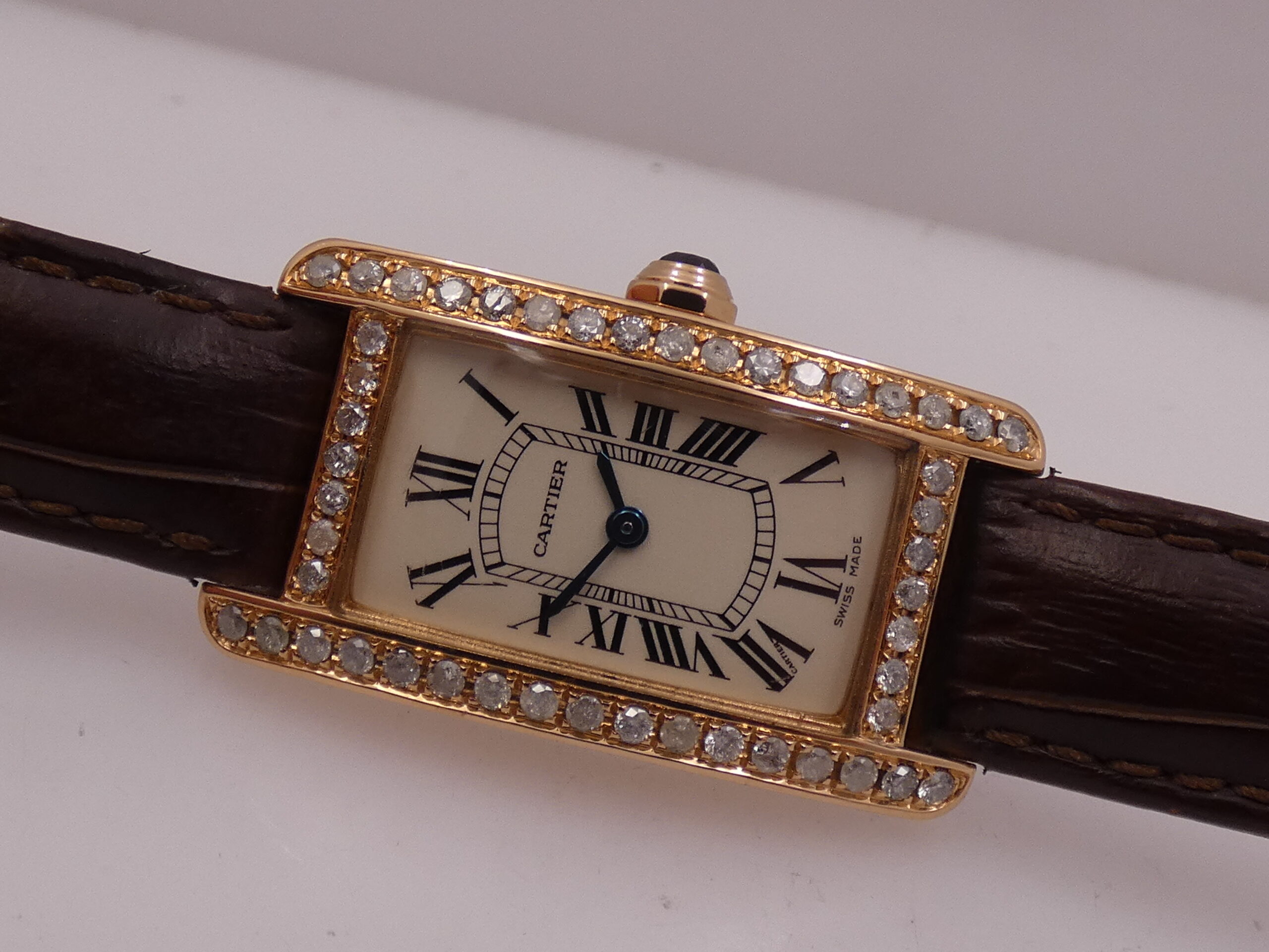 Movement: Precision quartz-controlled, Cartier caliber 157; battery recently replaced
