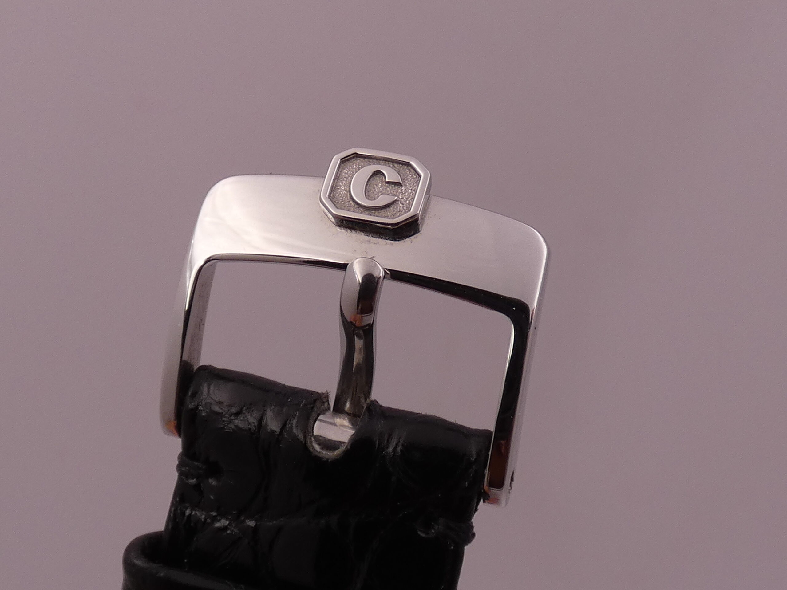 Dial: white, with raised bar markers, stylus hands, Chopard logo at 12