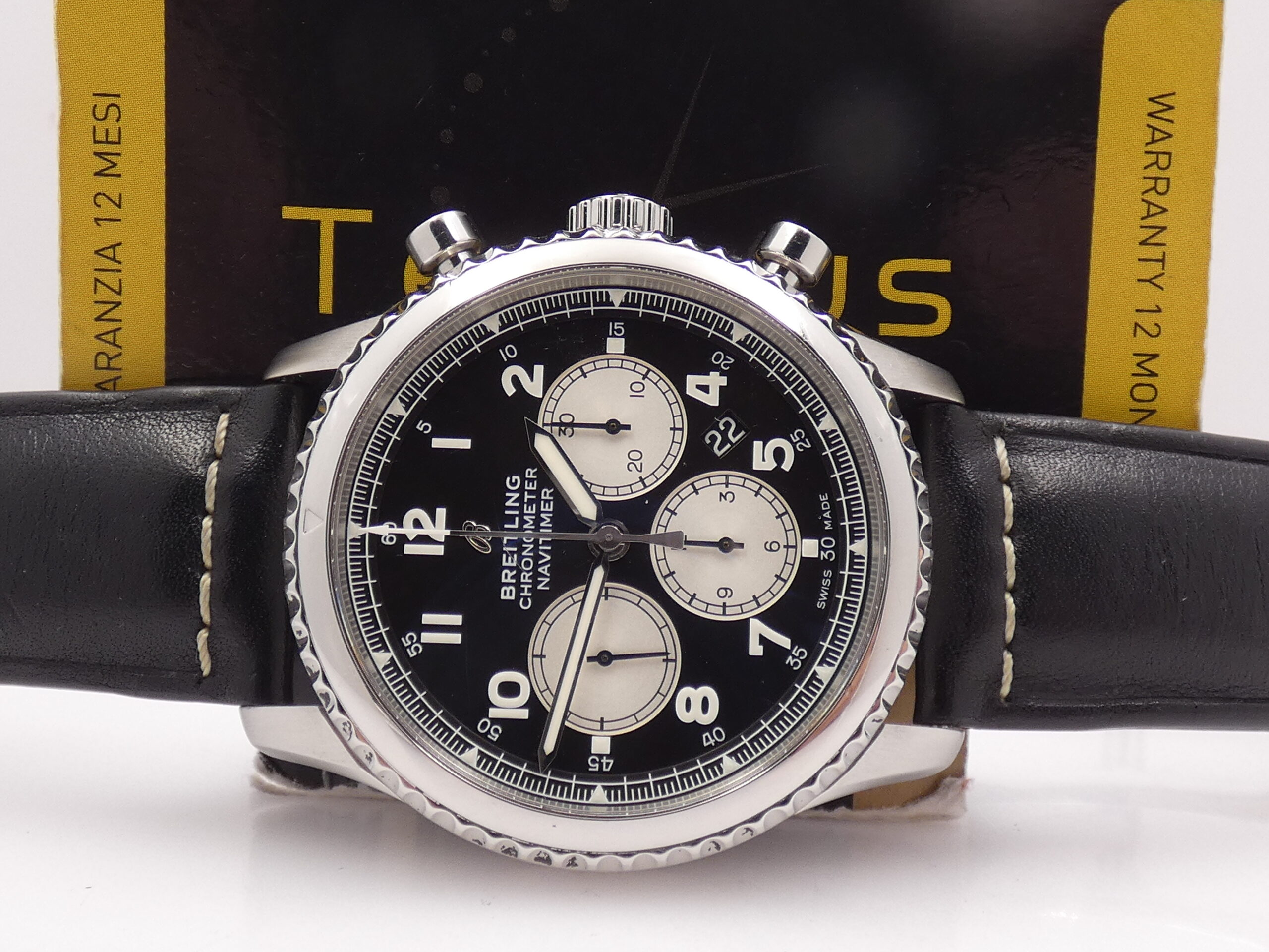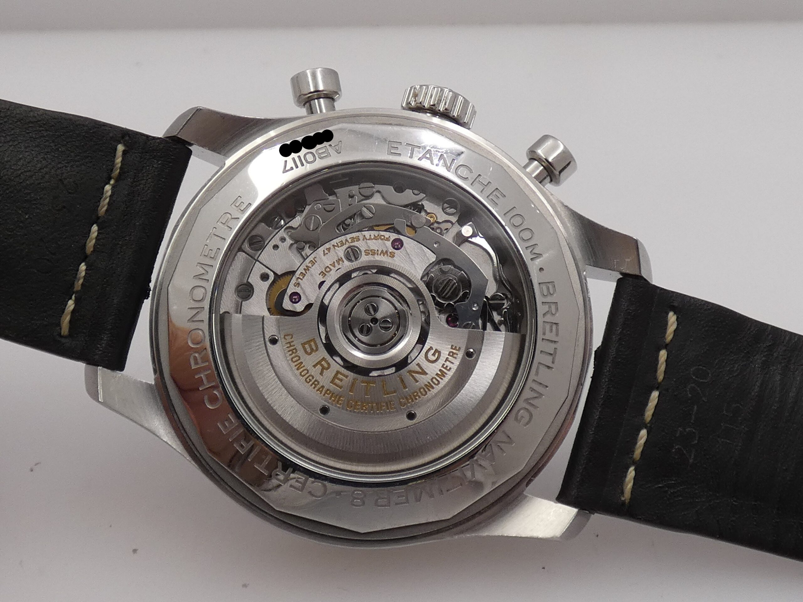 Verrà a voi consegnato con la sua scatola, la sua controscatola leggermente rovinata esternamente, il suo certificato C.O.S.C., il suo manuale, la sua garanzia, il suo porta documenti e il suo sigillo, originali Breitling, più la nostra garanzia di 12 mesi sul buon funzionamento!!!