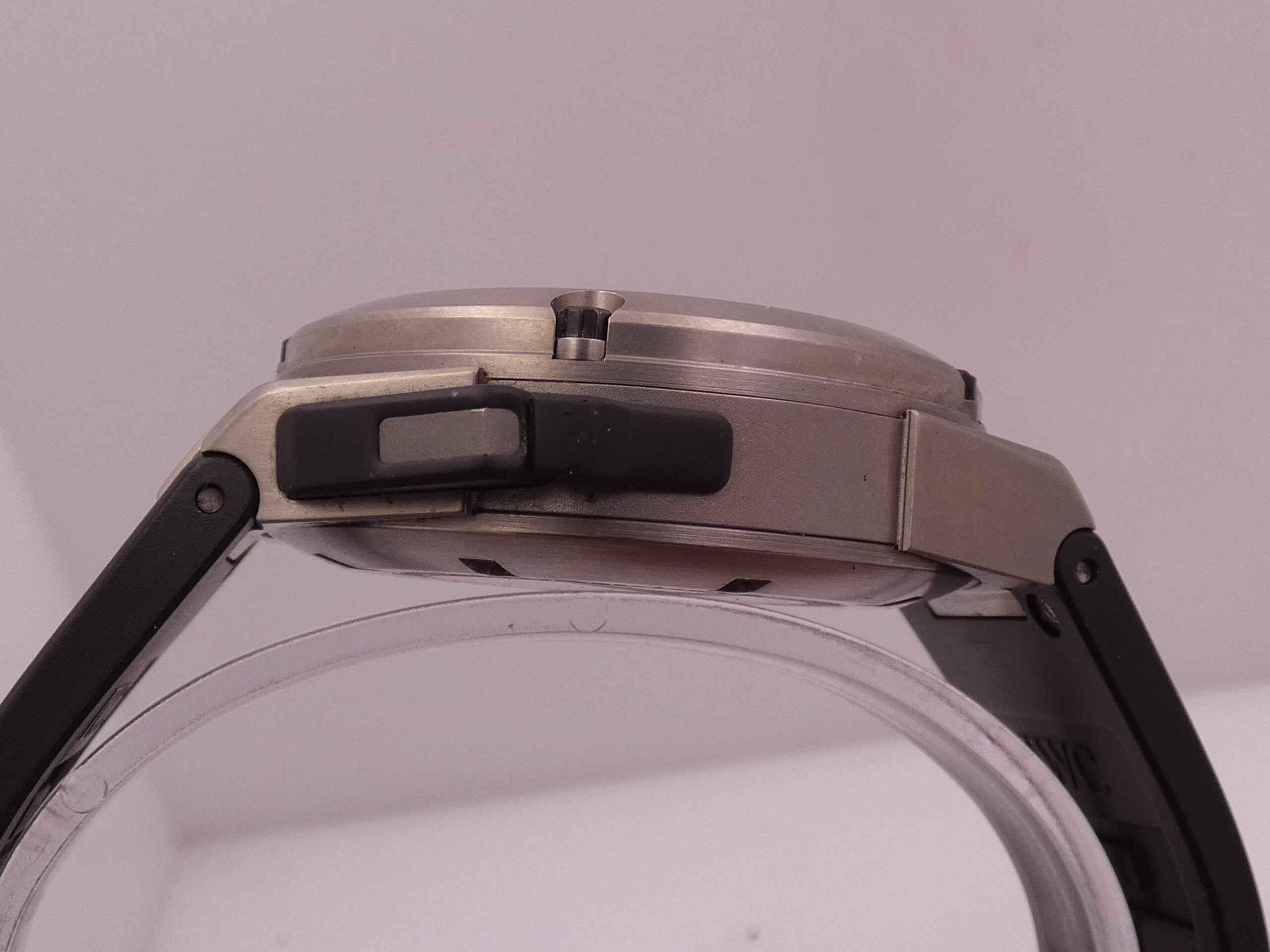 Crown: Screw-down, with rubber knurled edge and protective shoulders, original IWC