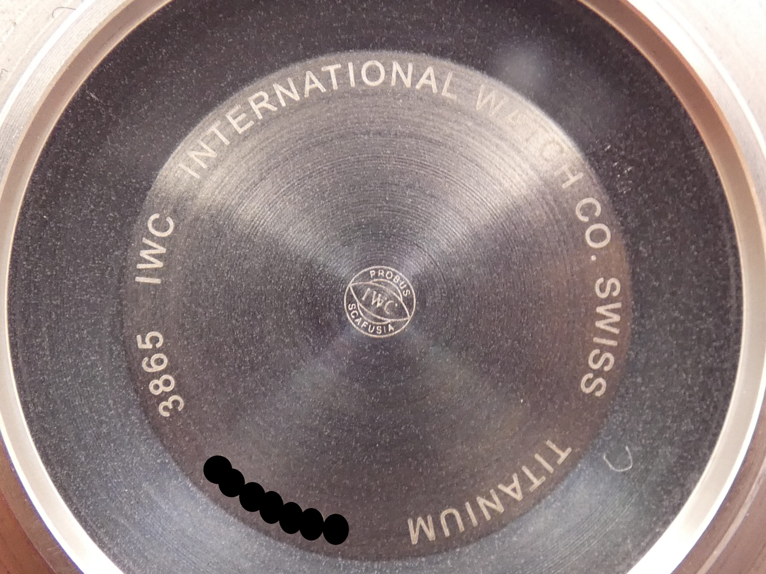 Dial: Silvered, with raised, burnished steel bar indexes treated with luminescent material, burnished steel pencil hands with luminescent coating, running seconds at 9 o’clock, chronograph minutes at 12 o’clock, chronograph hours at 12 o’clock. 6 o’clock, center double chronograph seconds dial, chronograph start button at 10 o’clock, day-date at 3 o’clock with quick-set crown, 60-minute scale on the bezel flange, IWC logo at 9 o’clock