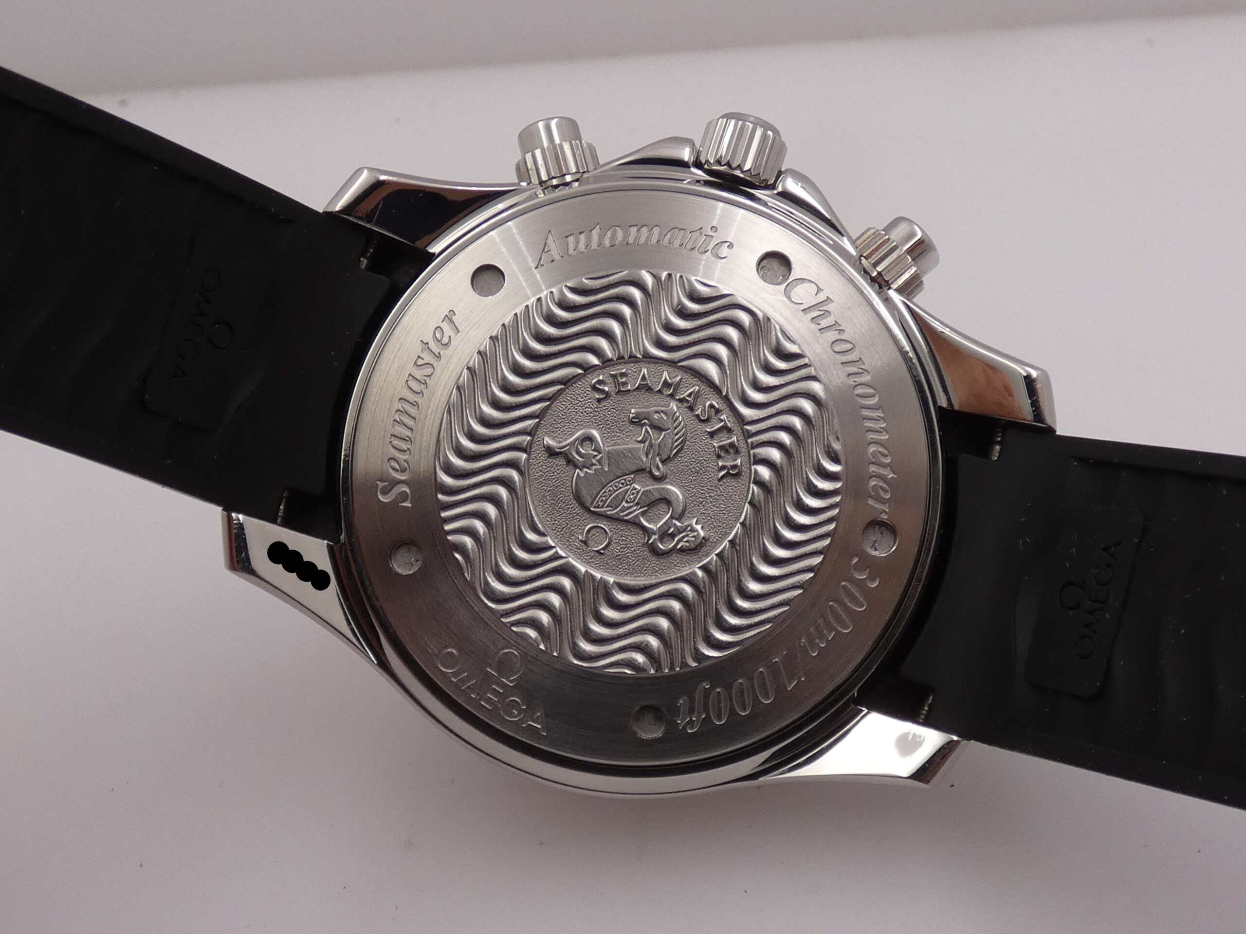 Model: Seamaster Racing Regatta Chronograph Reference: 2869.52.91 Year: 2012 Movement: Omega-manufactured self-winding mechanical movement, caliber 3602 with 28 jewels, COSC-certified chronometer Functions: Hours, minutes, seconds, regatta chronograph Case: Oversized, all-steel Bezel: Black, unidirectional rotating bezel with a 60-minute scale for calculating dive times and a luminescent dot at 12 o’clock Crown: Original screw-down crown with protective crown Push-buttons: Push-button Lugs: Propeller-type; 21 mm connection Dimensions: 44 mm excluding crown, 52 mm at the lugs Crystal: Sapphire, with anti-reflective coating Case back: Screw-down, featuring the brand logo and the iconic seahorse in bas-relief Dial: Black, with raised steel bar indexes, treated with luminescent material and corresponding luminescent dots, semi-skeletonized arrow hands, also in steel with luminescent tips, continuous seconds at 3 o’clock, chronograph minutes at 9 o’clock, chronograph hours at 6 o’clock, central chronograph seconds, perforated circles on the dial that allow for easy reading of time intervals during regattas at a glance, 60-second scale with 1/5th of a second subdivisions, Omega logo at 12 o’clock Strap: Original Omega, rubber Clasp: Steel, original OmegaThe watch you see for sale is in excellent condition, perfectly It works, is precise and reliable, and is waterproof: its water resistance is guaranteed by a test. It is completely original. It will be delivered with its original Omega box, its slightly damaged outer box, its warranty, its pictogram, and its instruction manual, plus our 12-month warranty on proper functioning!!! It’s pictured. Sporty!!! WE WILL EXAMINE YOUR PRE-OWNED ITEM. WE SHIP FREE WORLDWIDE. INTERNAL CODE: QTZZ |