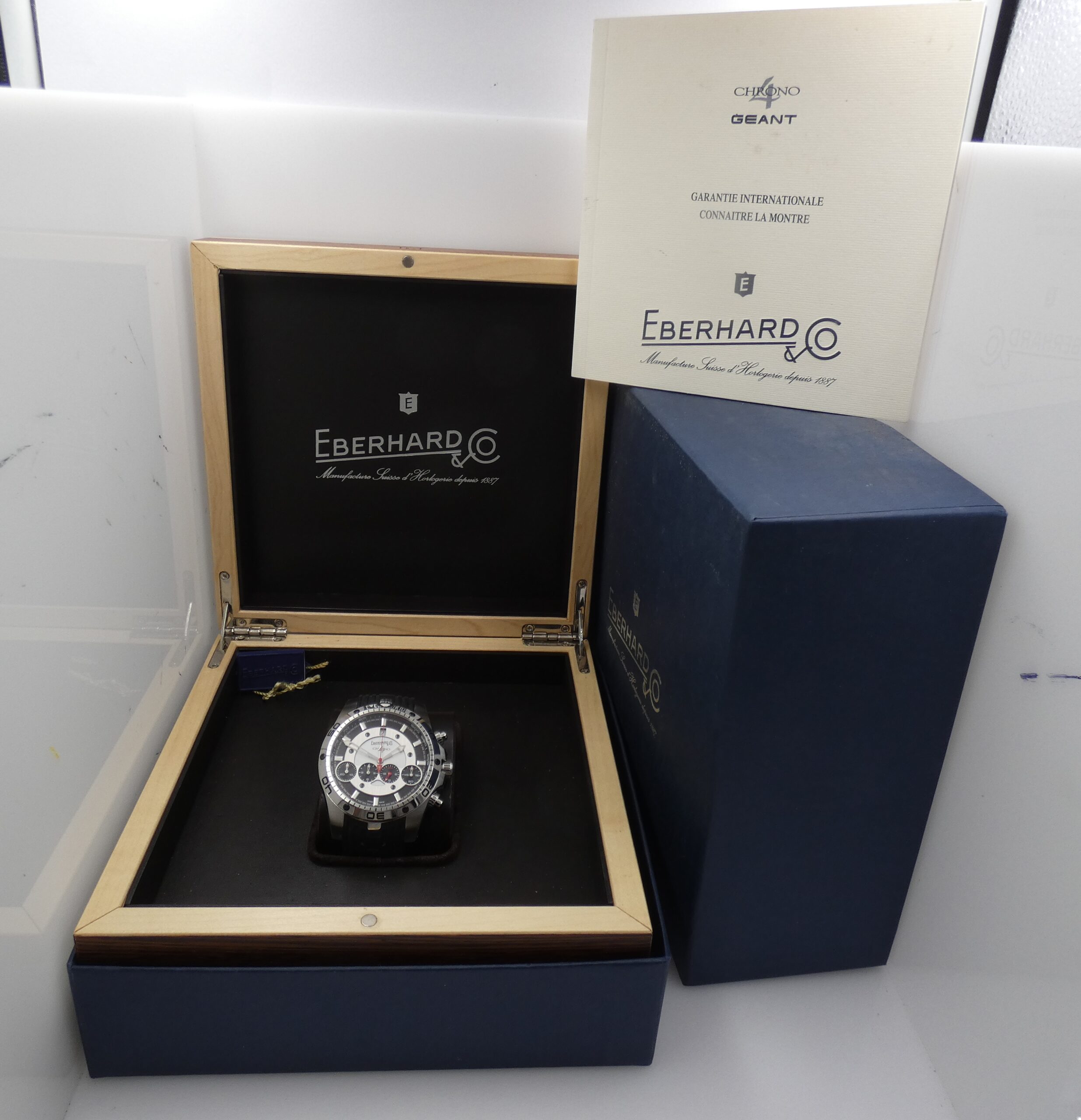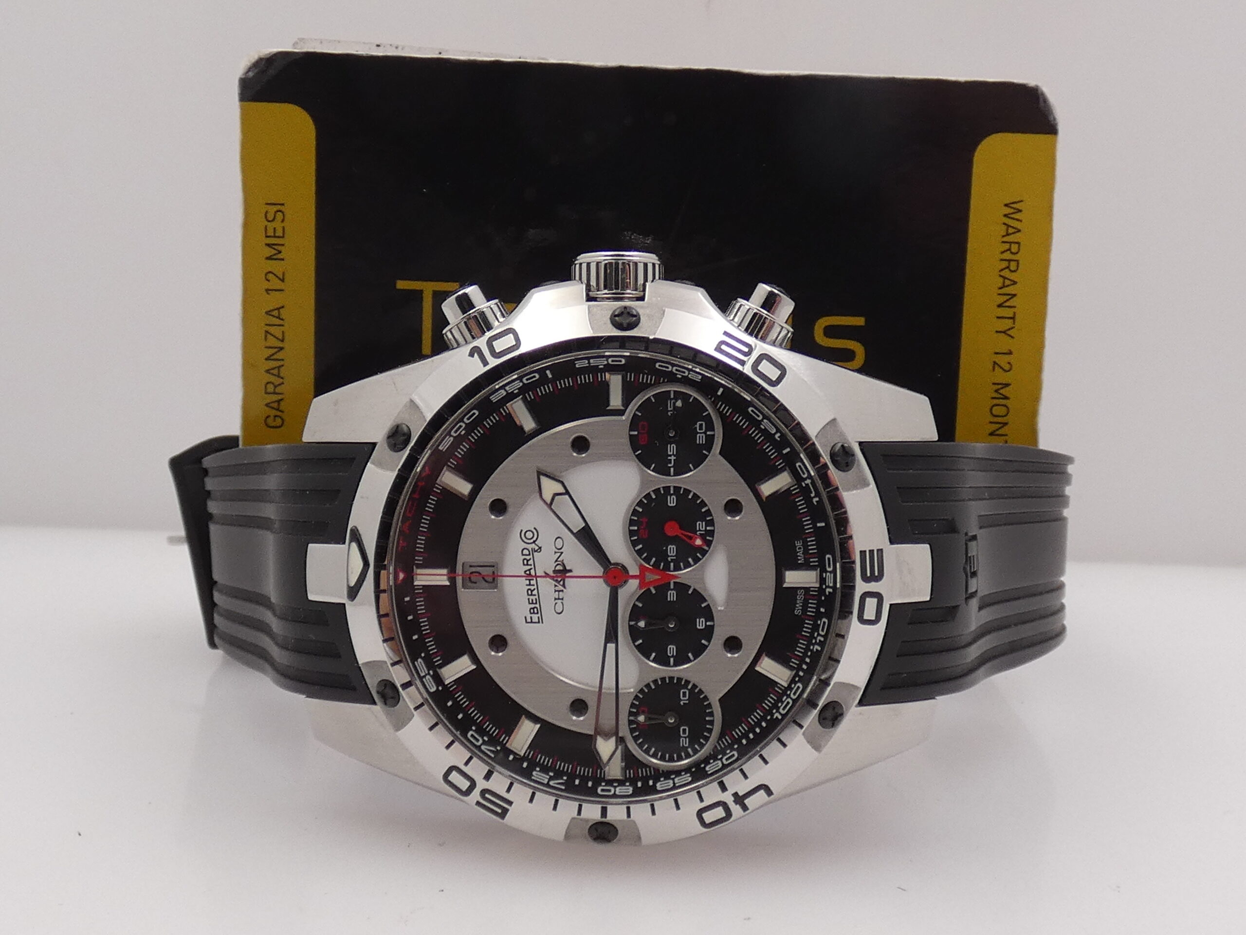 Verrà a voi consegnato con la sua scatola, la sua controscatola, il suo tag price riportante la referenza e la sua garanzia, originali Eberhard, più la nostra garanzia di 12 mesi sul buon funzionamento!!