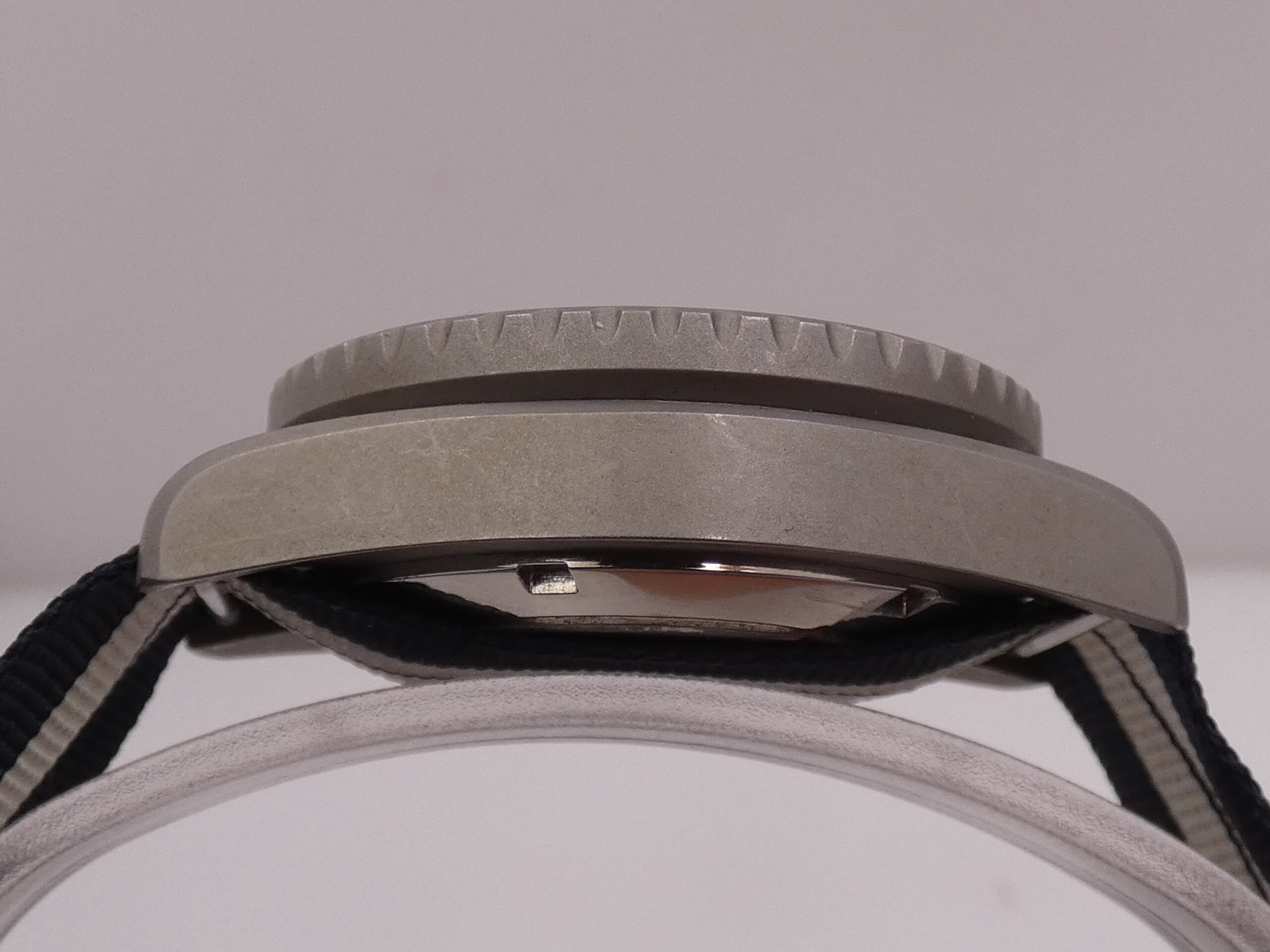 Bezel: Smooth, knurled, unidirectional rotating bezel with a sixtieth scale for calculating dive times, with a tritium dot at 12 o’clock