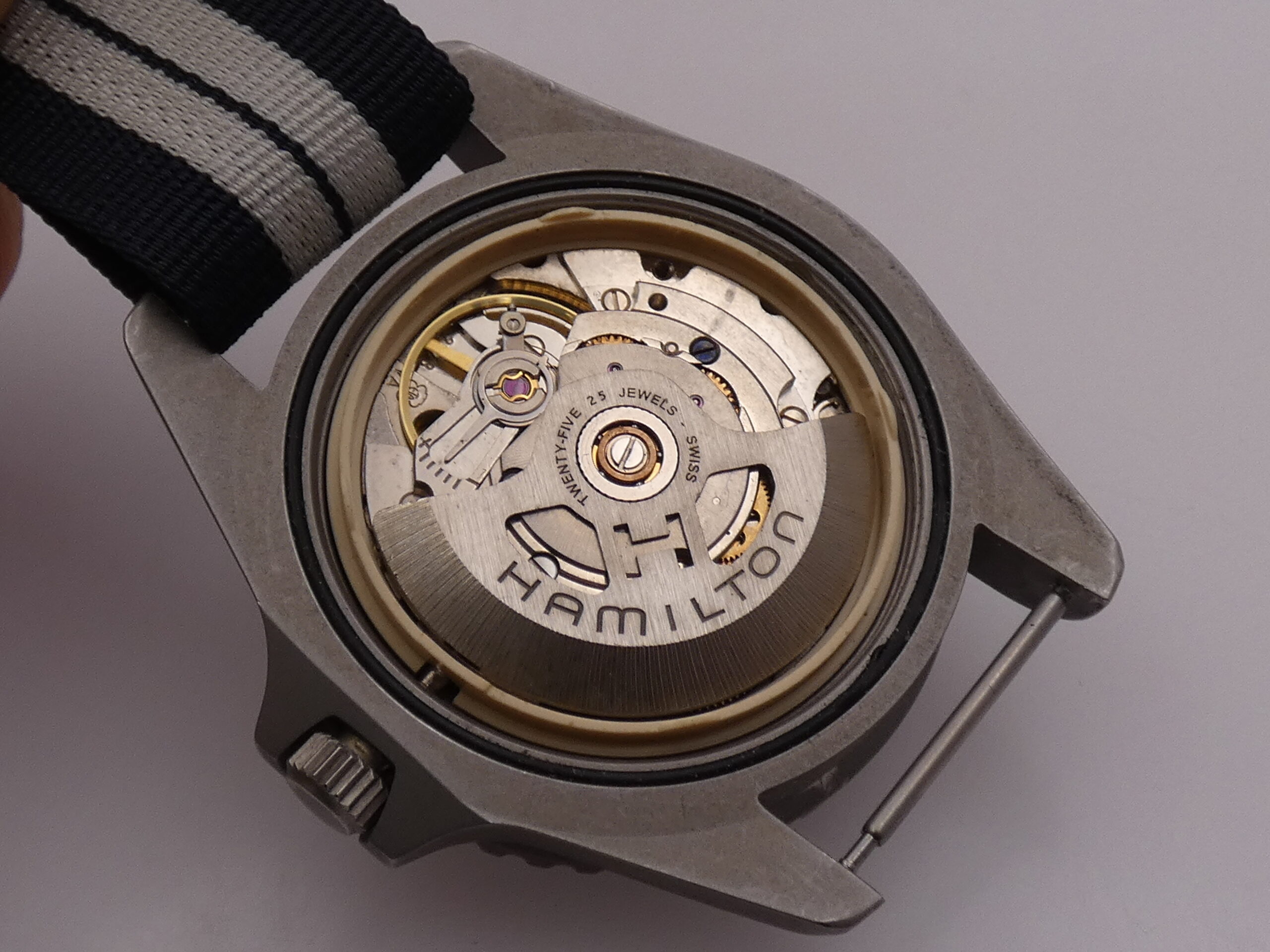 Movement: Mechanical, self-winding, Caliber ETA 2773, patented by Hamilton