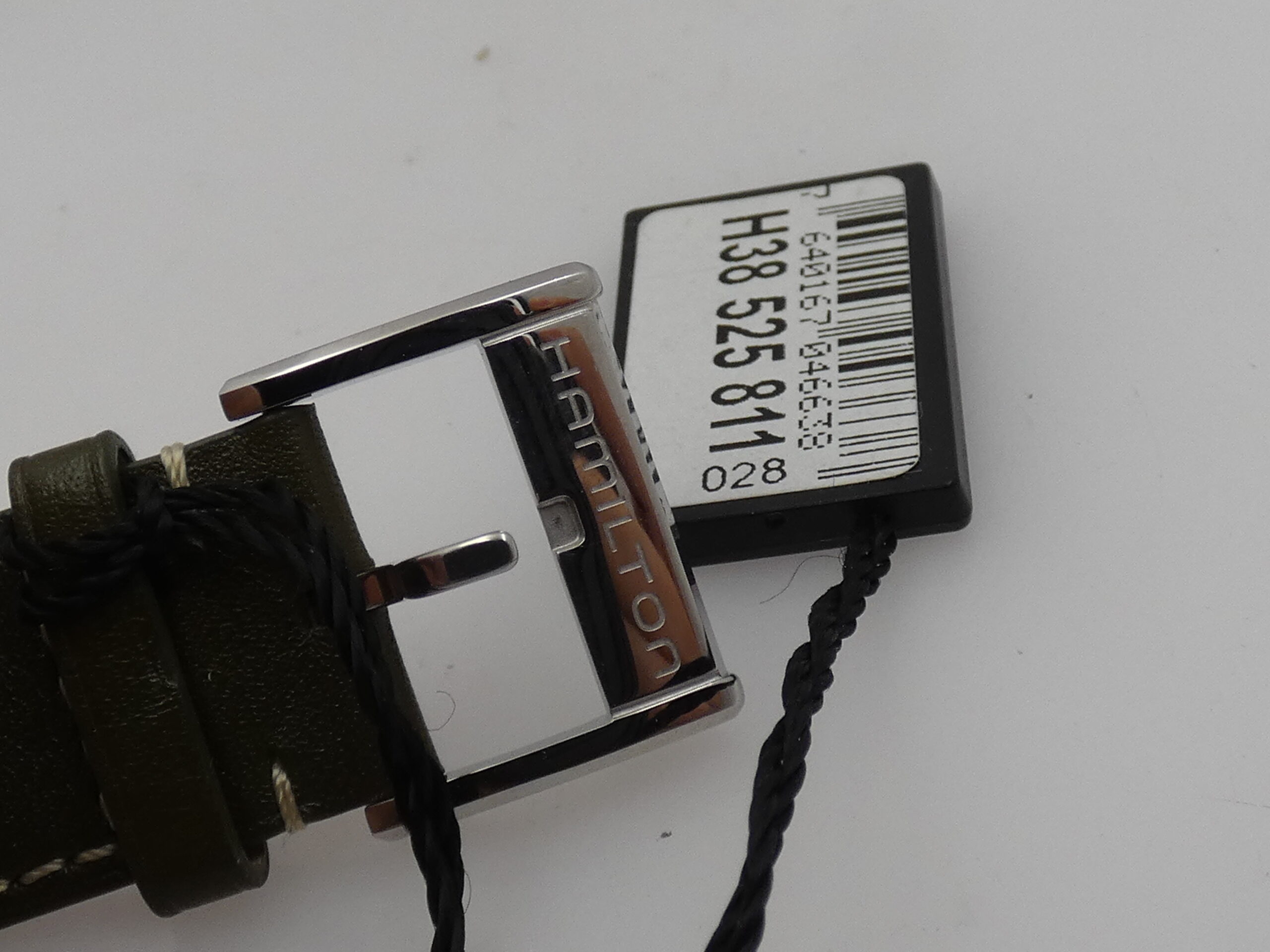 Verrà a voi consegnato con la sua scatola, purtroppo leggermente rovinata, la sua garanzia, ed il suo tag price originali Hamilton!!!