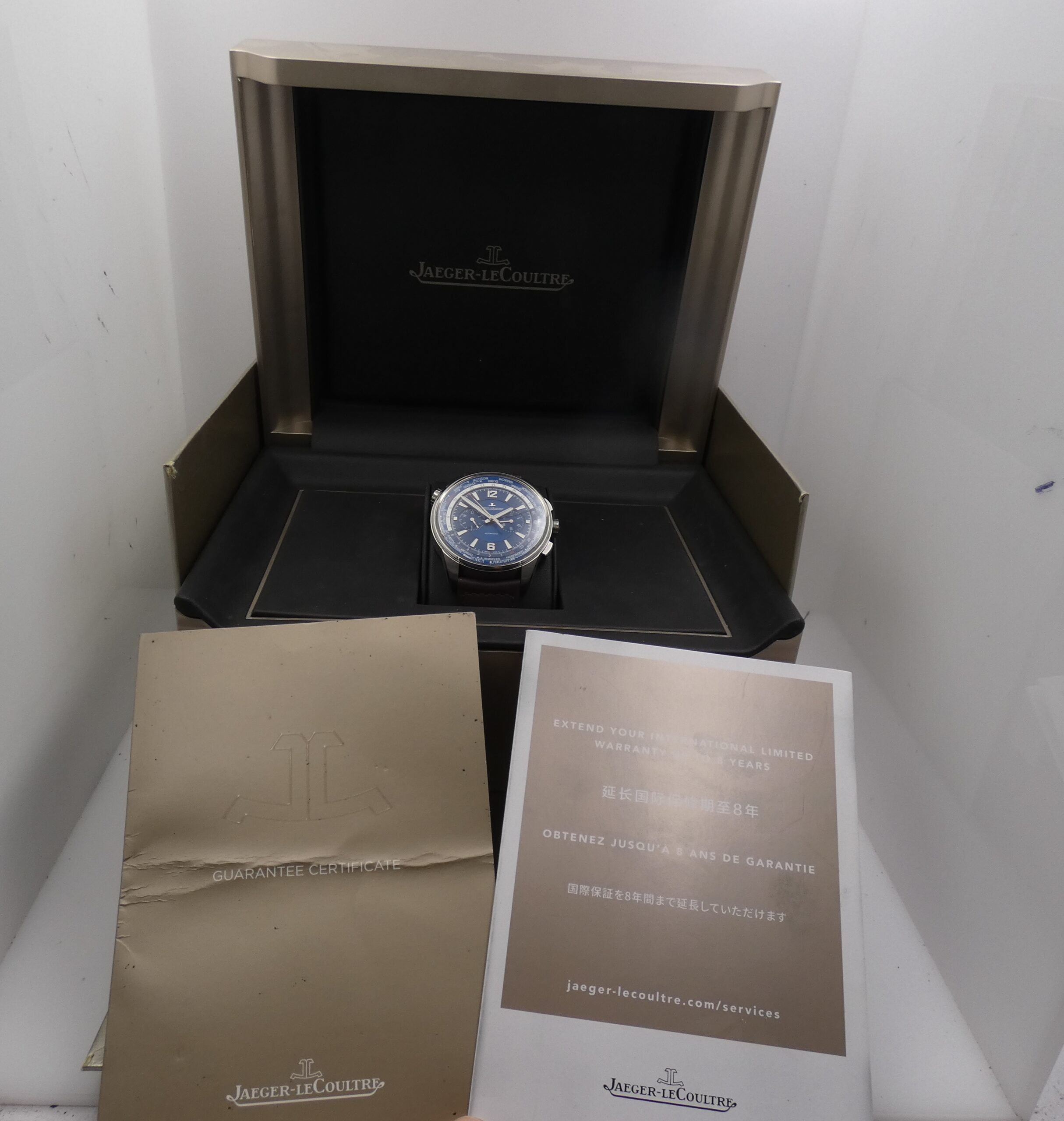 It will be delivered with its original box, outer box, and original Jaeger-LeCoultre warranty, plus our 12-month warranty on proper functioning!!!