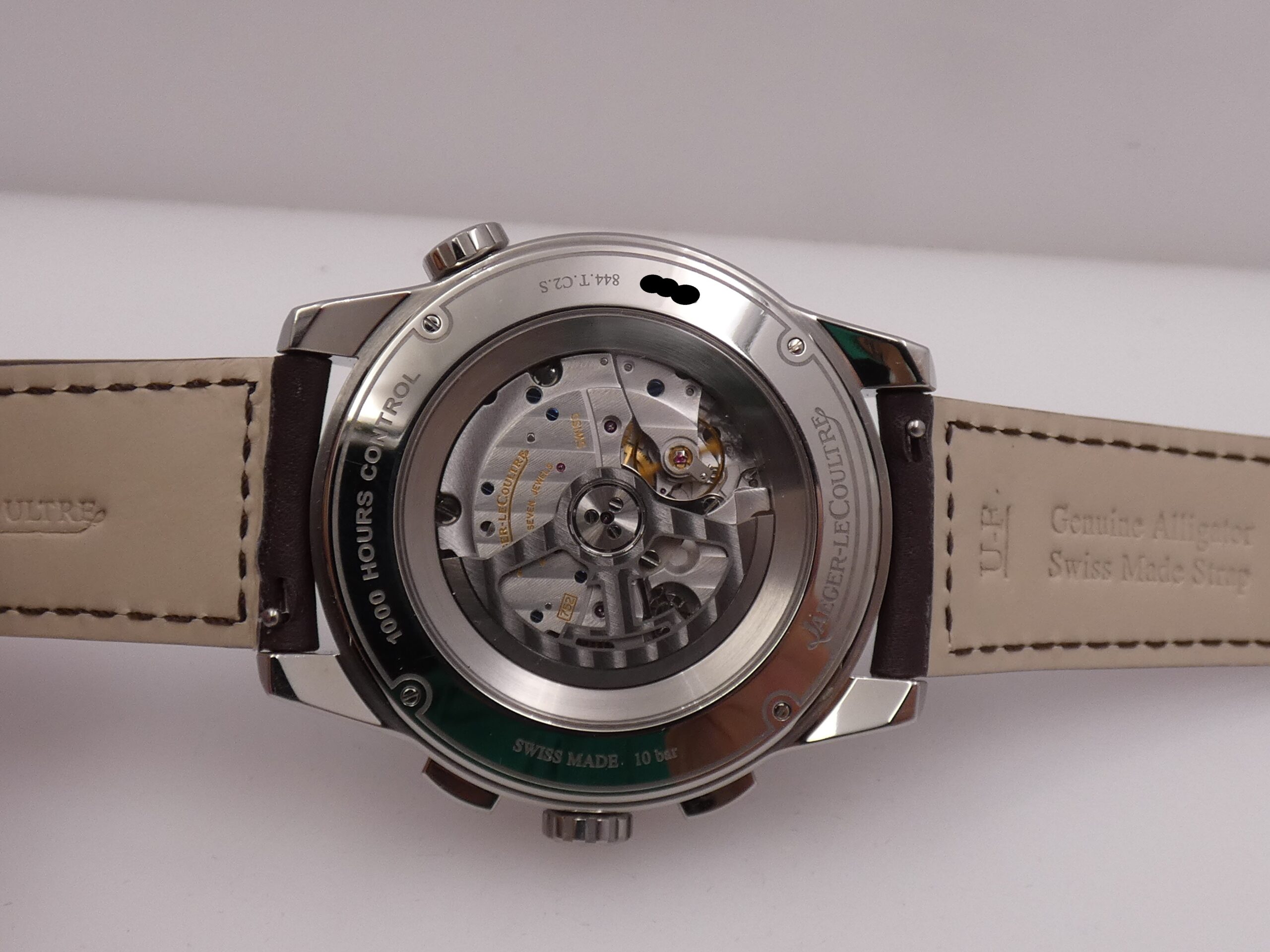 Movement: Jaeger-LeCoultre-manufactured, self-winding mechanical movement, caliber 751, with 37 jewels. This watch has undergone the meticulous “1,000-Hour Control” tests; this is stated on the caseback.