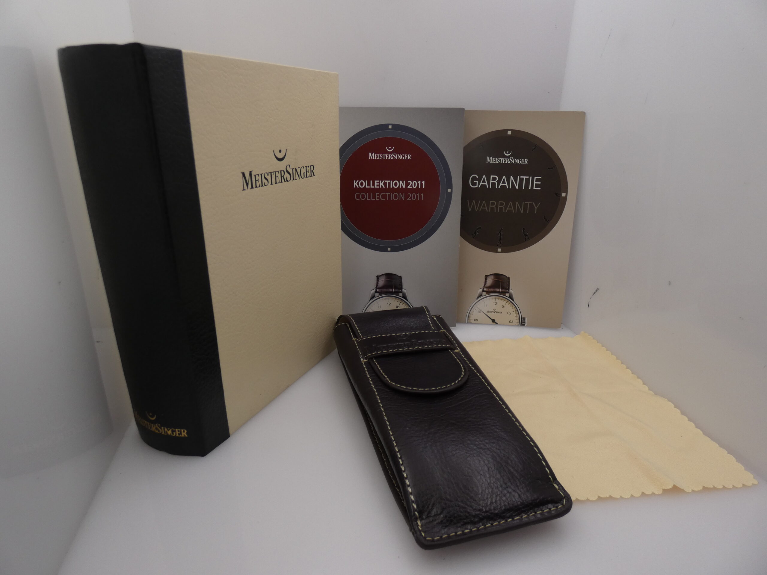 It will be delivered with its original MeisterSinger box, leather pouch, manual, cleaning cloth, and warranty, plus our 12-month warranty on proper functioning!