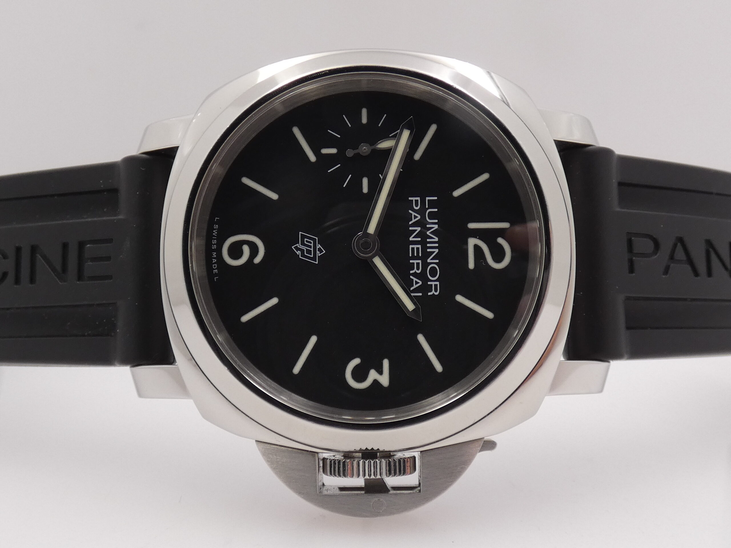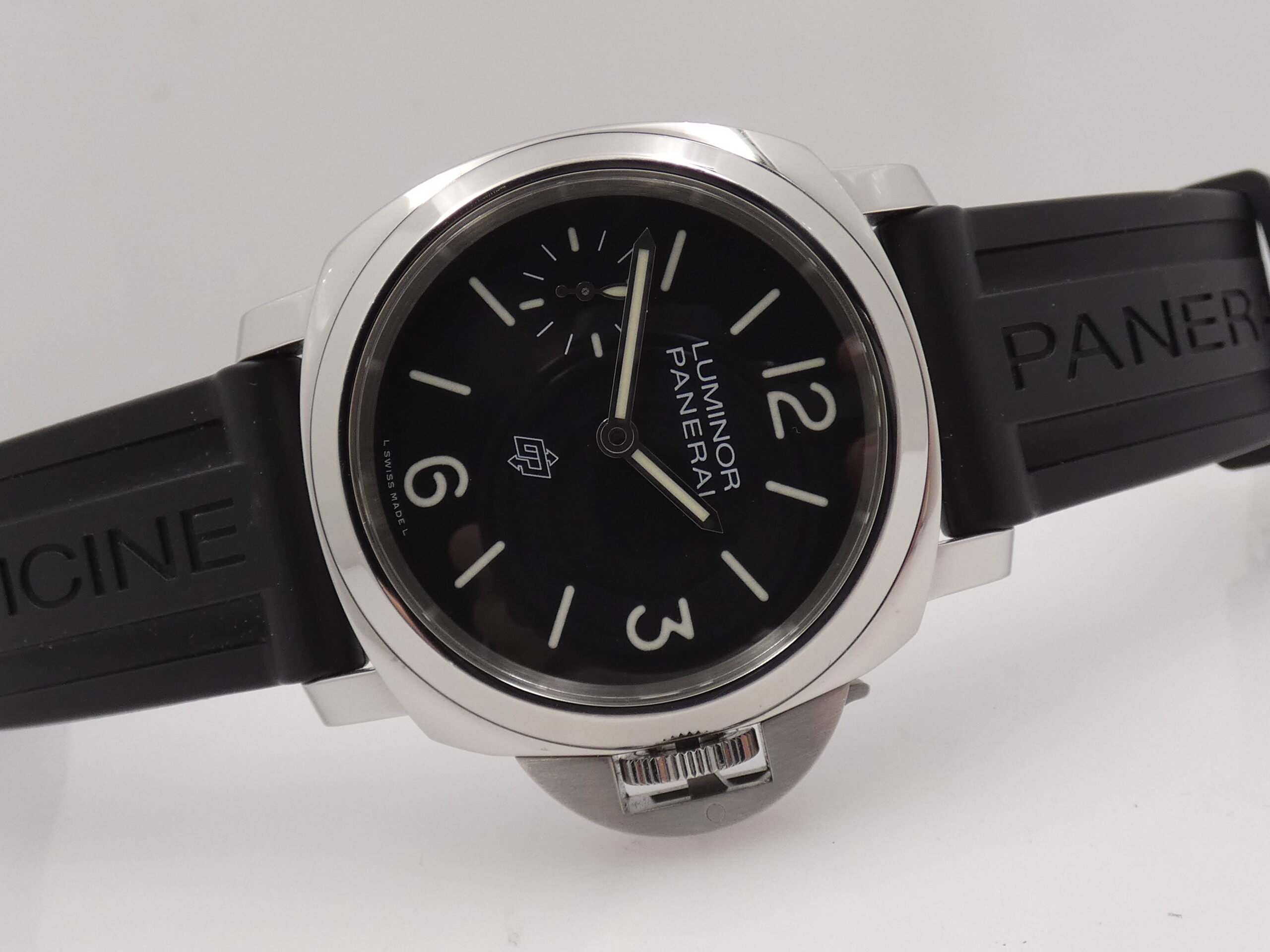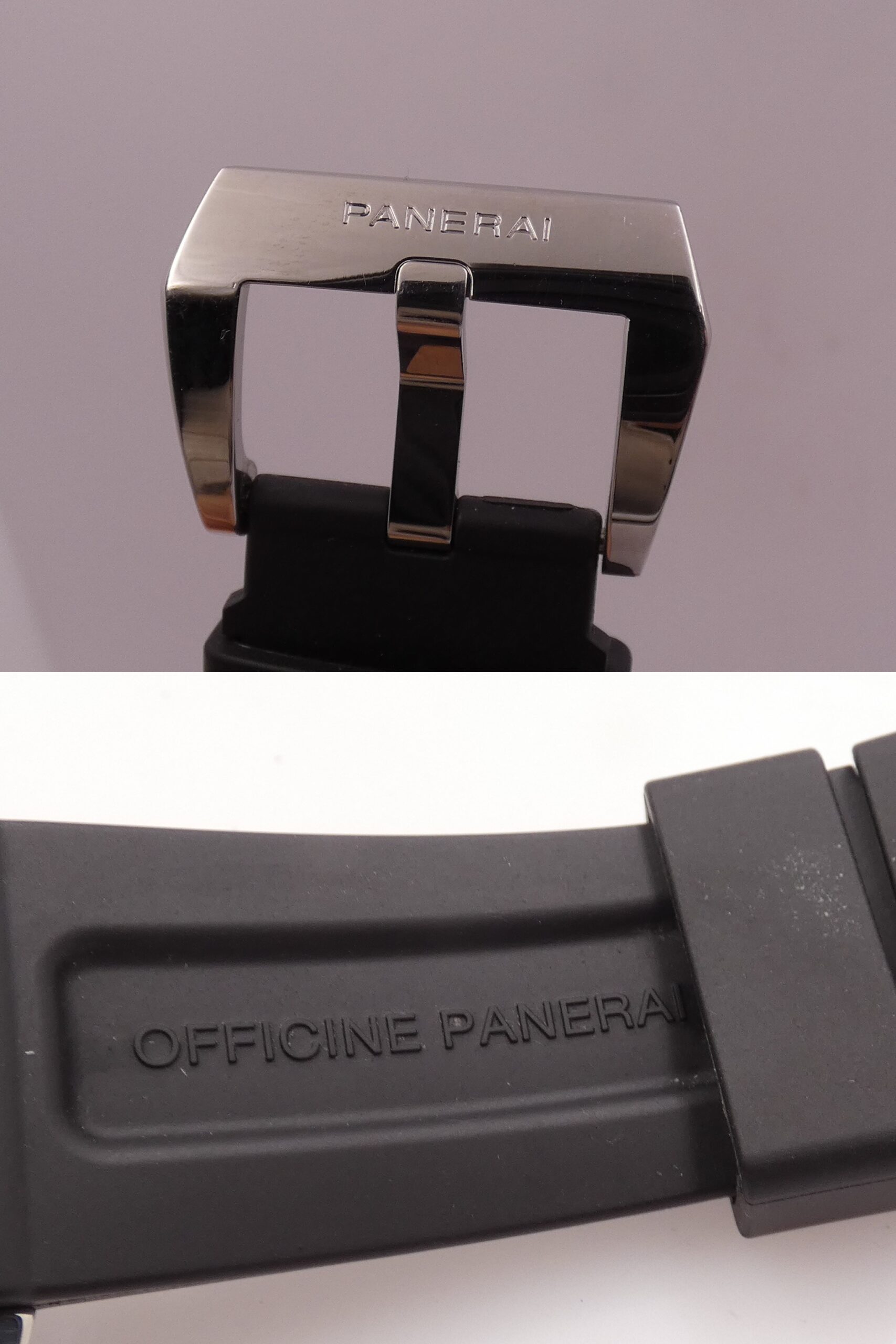 Dial: Black, with Luminova-treated bar and Arabic numeral hour markers, luminescent pencil hands, small seconds at 9 o’clock, Panerai logo at 6 o’clock