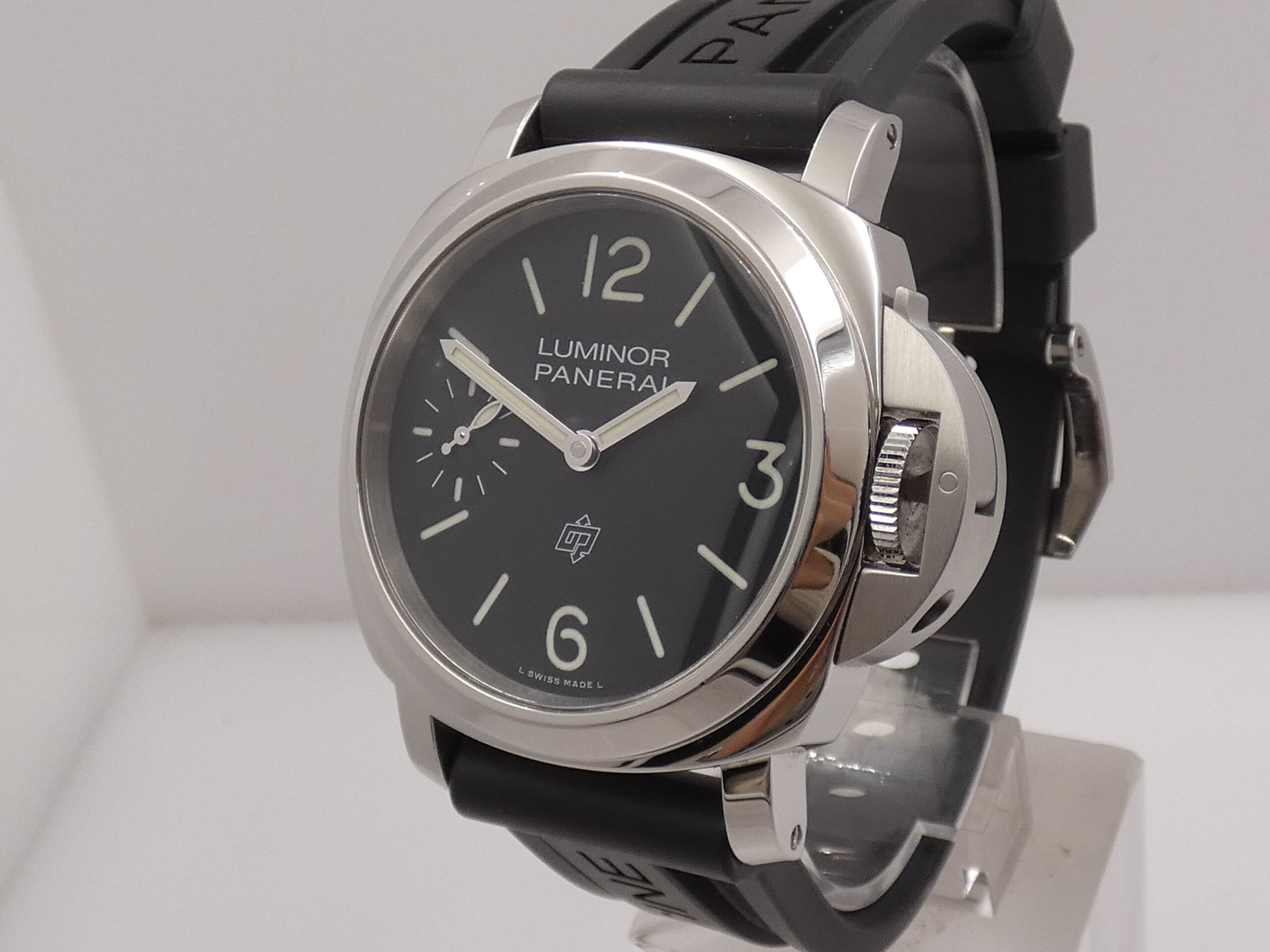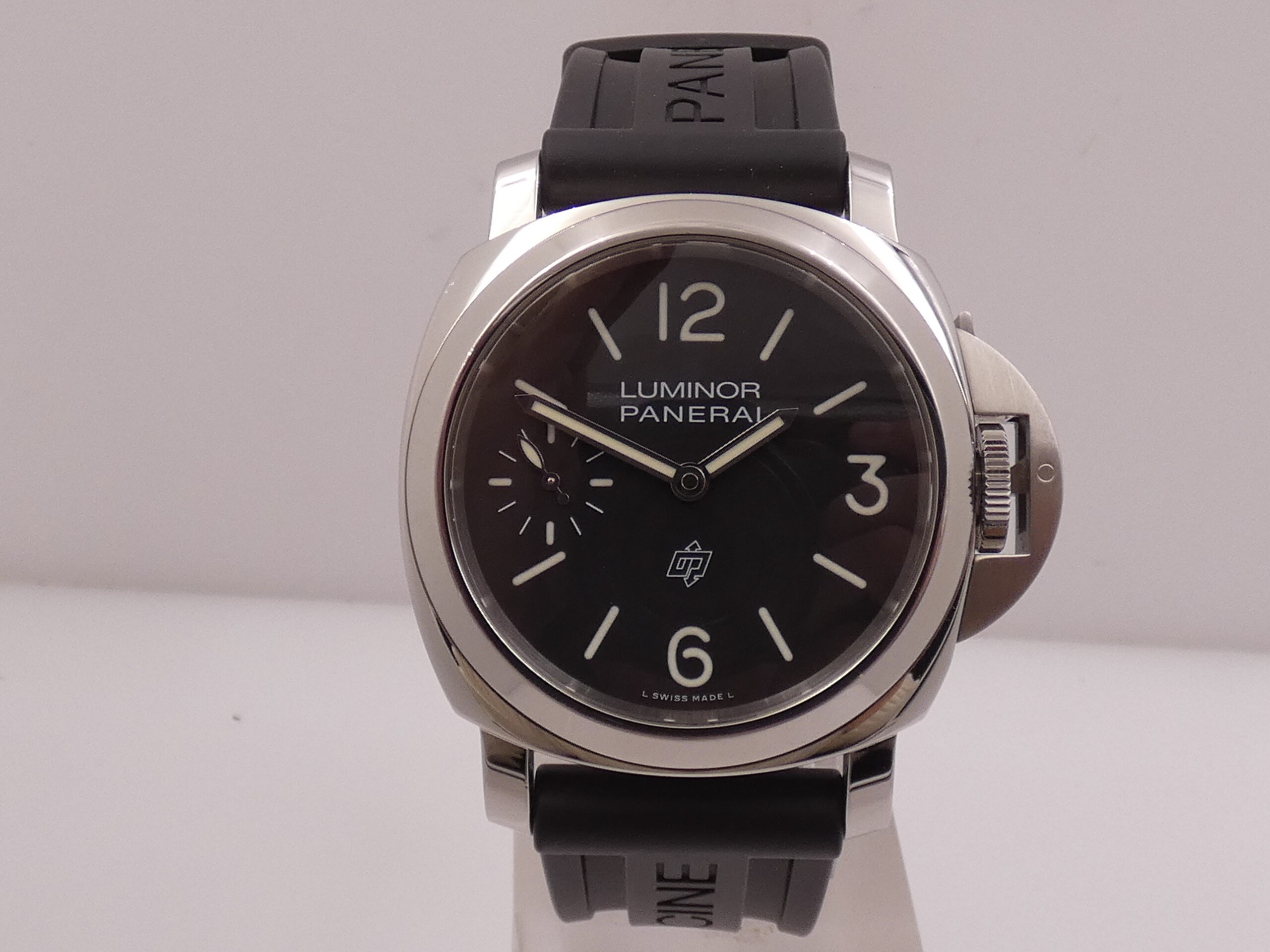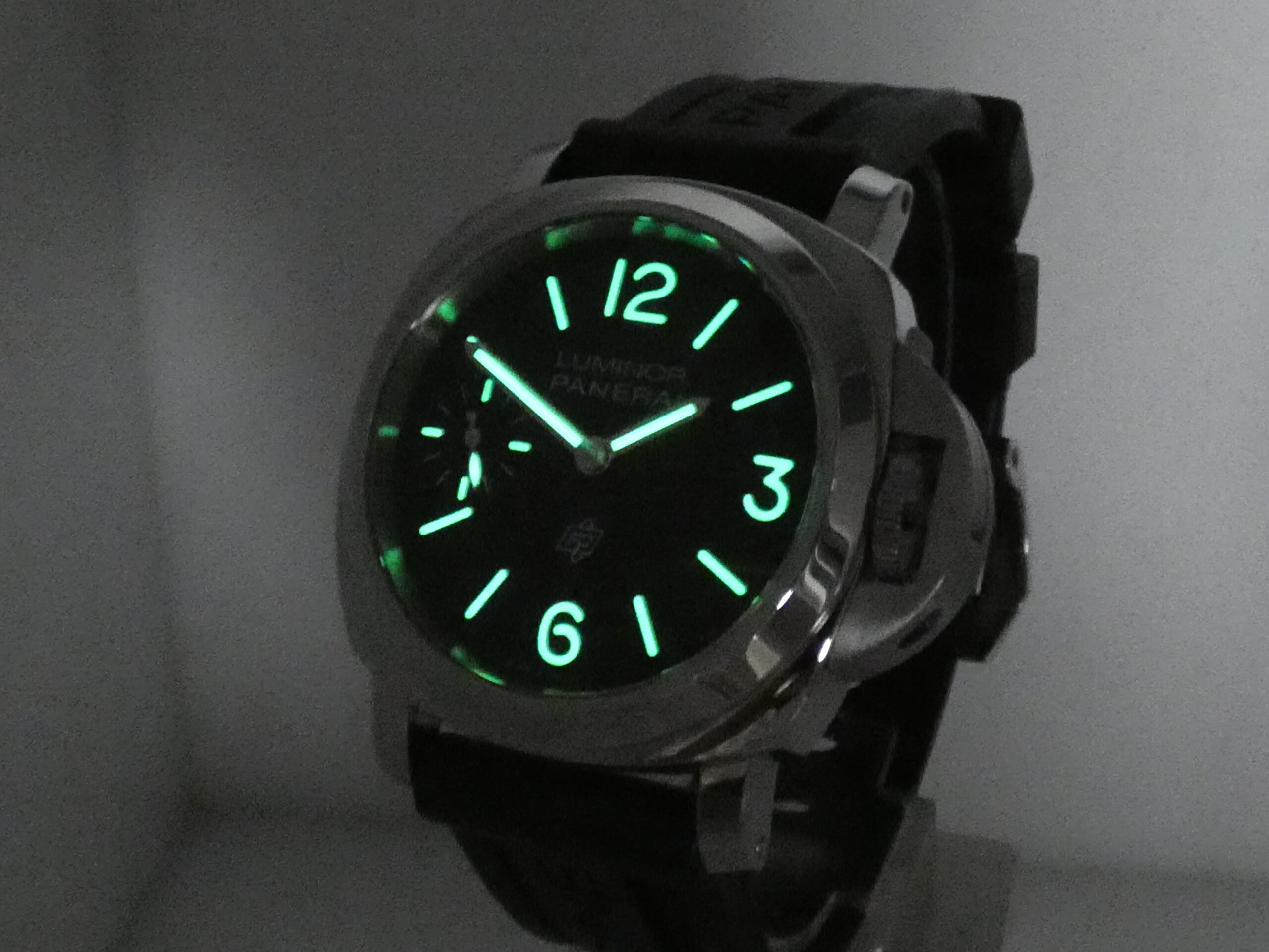 Dial: Black, with Luminova-treated bar and Arabic numeral hour markers, luminescent pencil hands, small seconds at 9 o’clock, Panerai logo at 6 o’clock