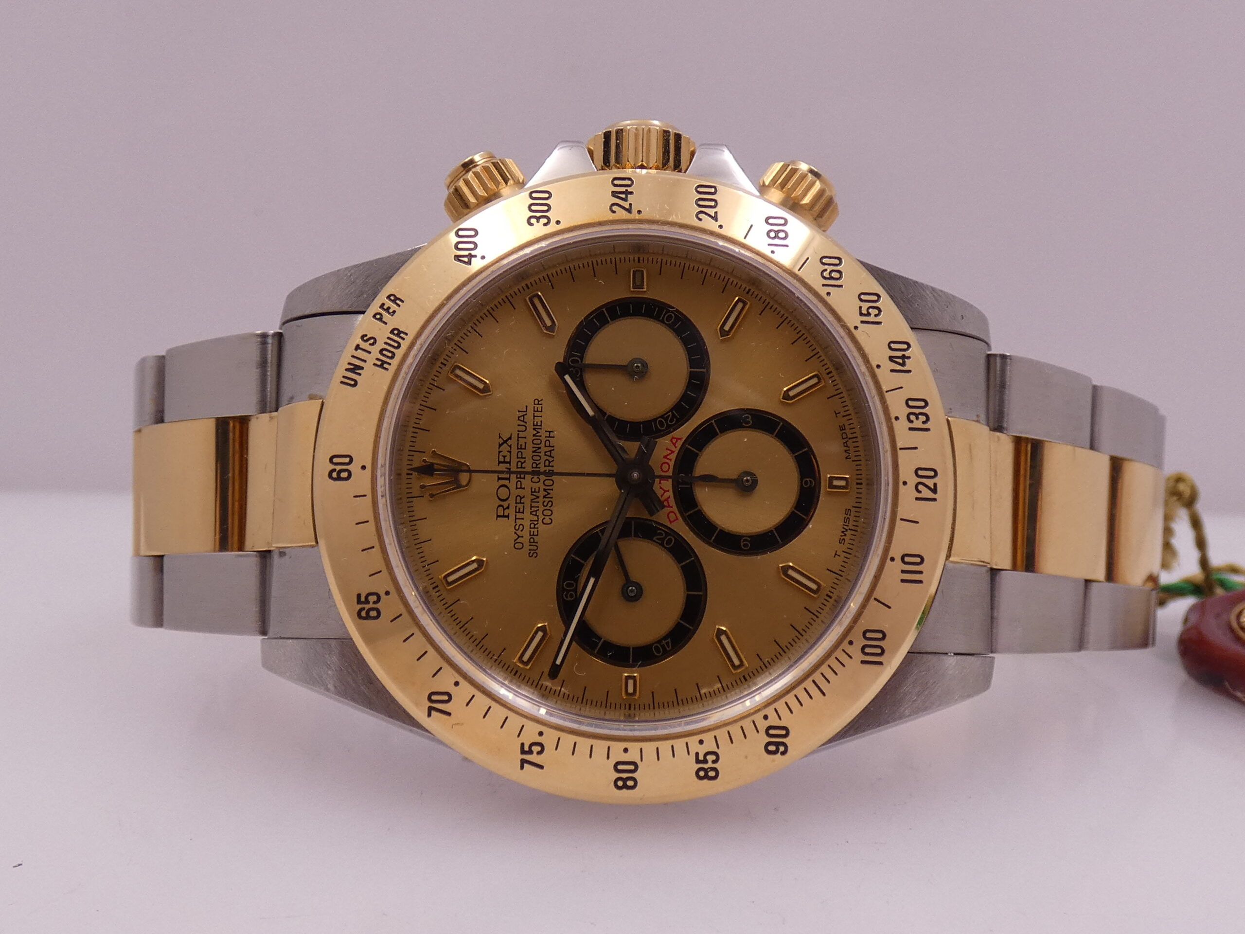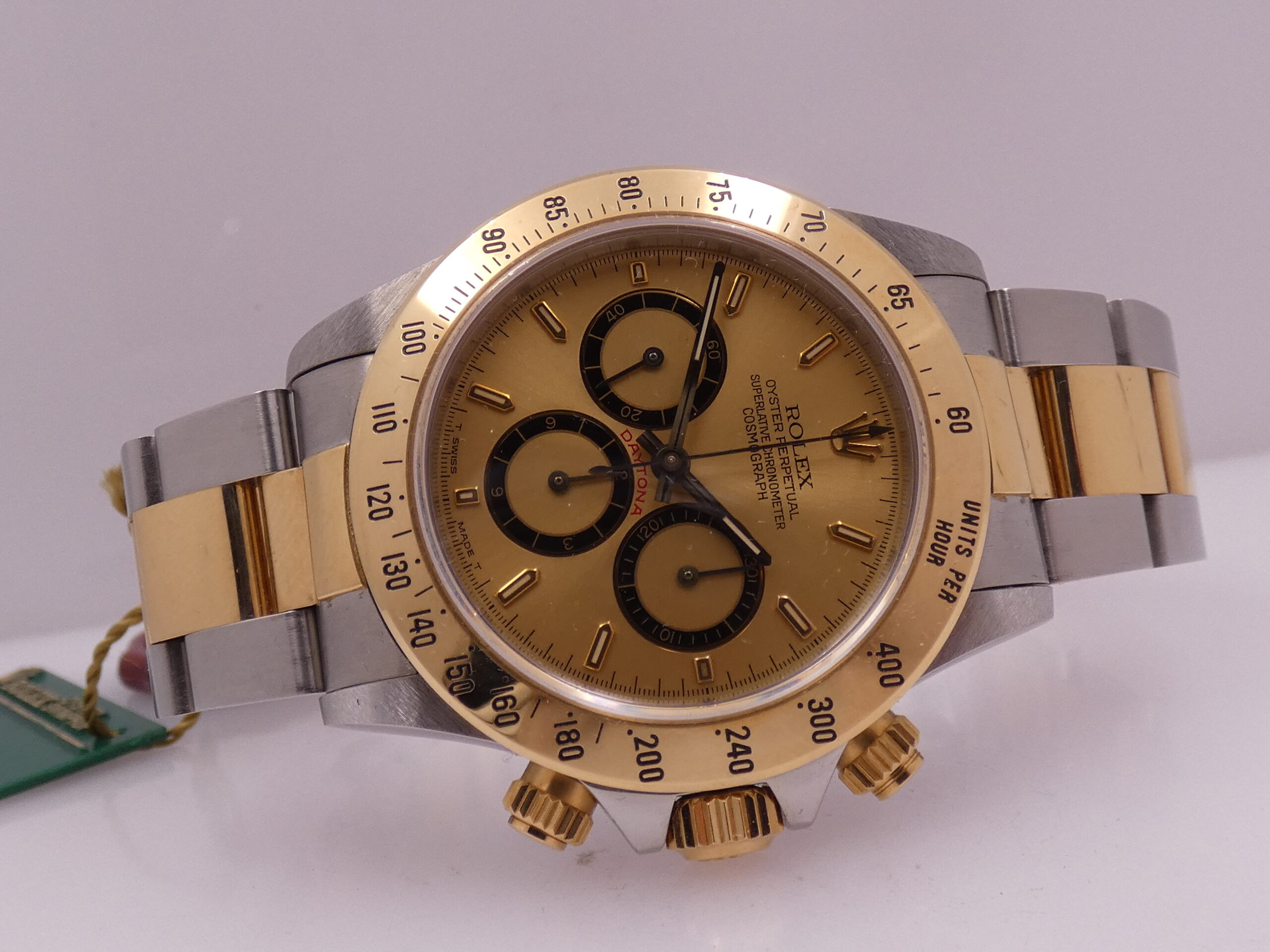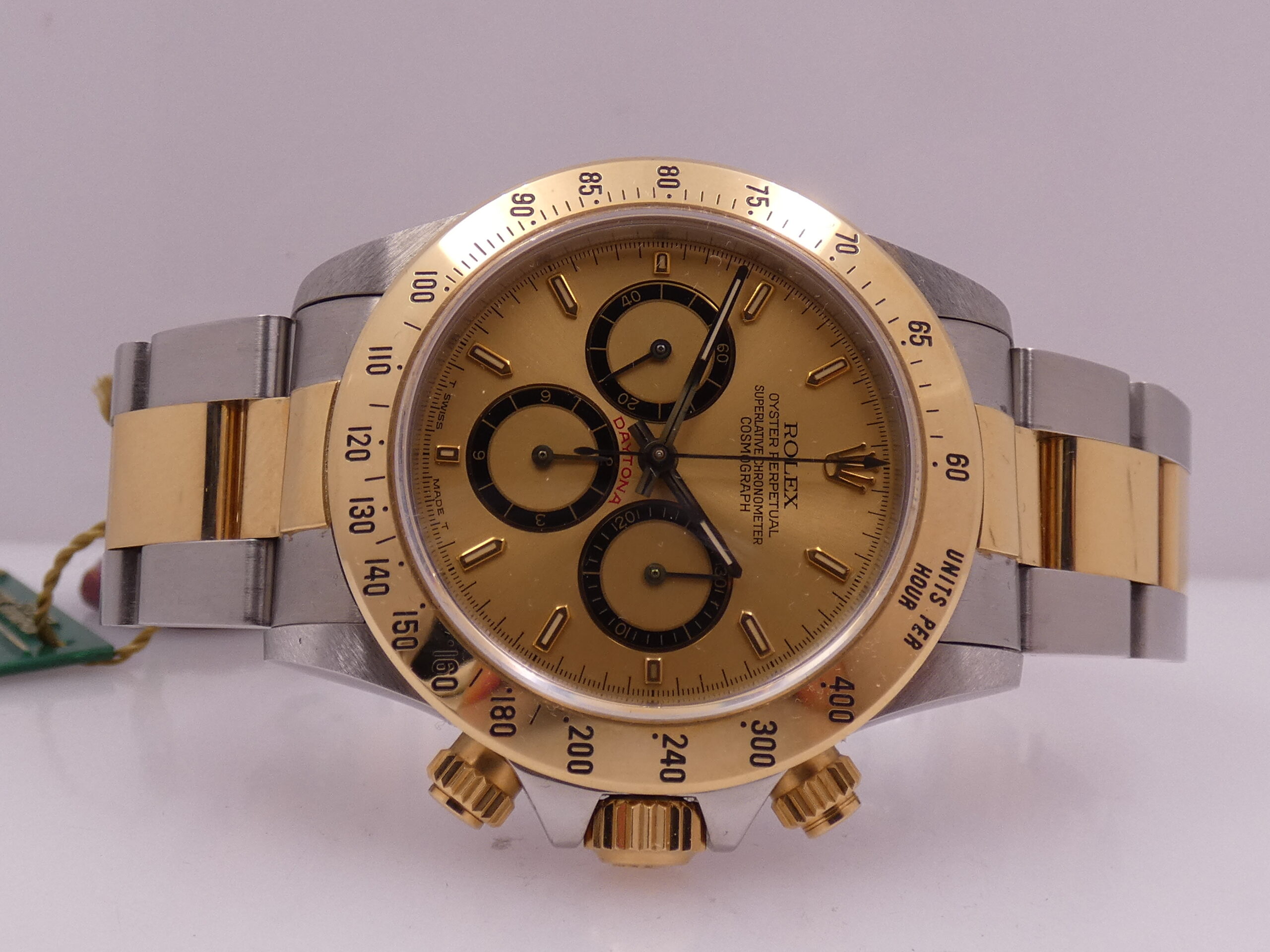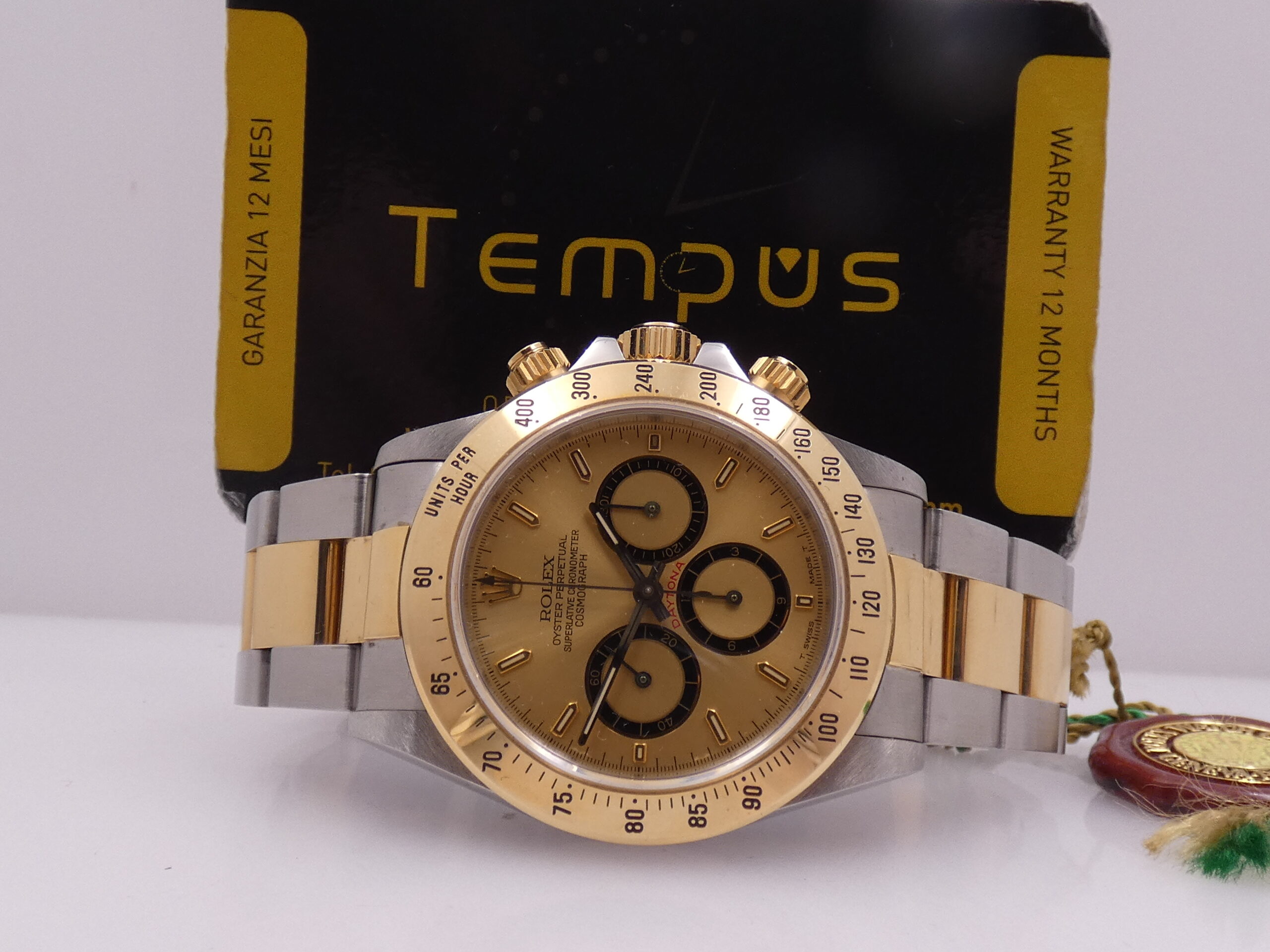 Rolex Daytona Zenith 16523 4 Liner 6 Inverted N.O.S. BOX PAPERS & TAG PRICE Serie L Anno 1990 Automatico Oro 18Kt & Acciaio NEW OLD STOCK!!!