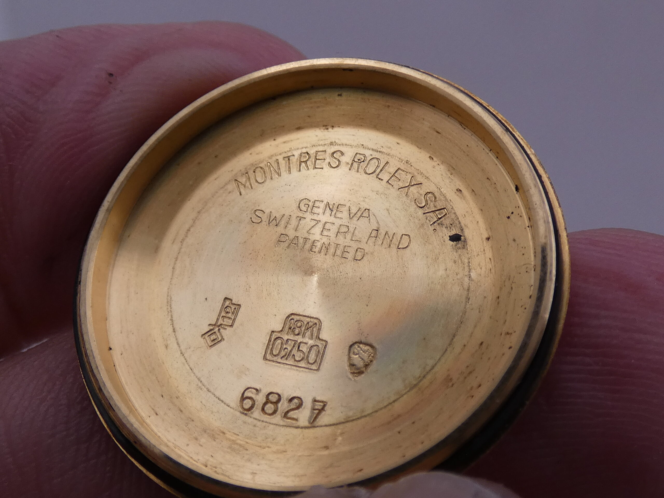 Dial: SIGMA, silvered sunburst, with raised gold tritium-filled bar indexes, gold baton hands, also tritium-treated, center seconds, date display 3 with magnifying glass, 60-minute scale, Rolex logo at 12 o’clock