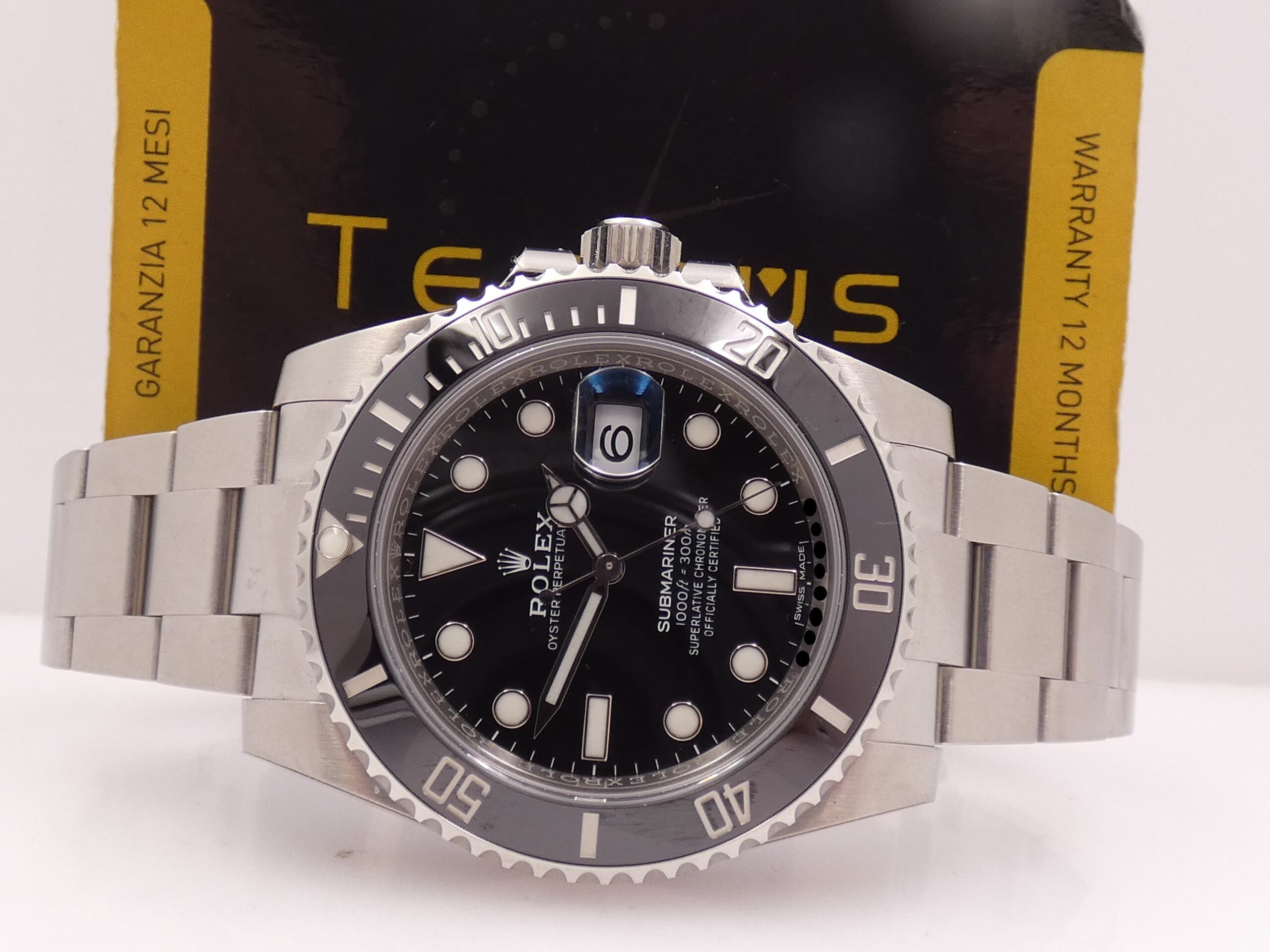 Verrà a voi consegnato con la sua scatola, la sua controscatola, la sua garanzia Italia, il suo tag price riportante il seriale e la referenza dell’orologio, i suoi manuali, il suo porta documenti in pelle, il suo sigillo C.O.S.C. ed il suo coprighiera originali Rolex, più la nostra garanzia di 12 mesi sul buon funzionamento!!!