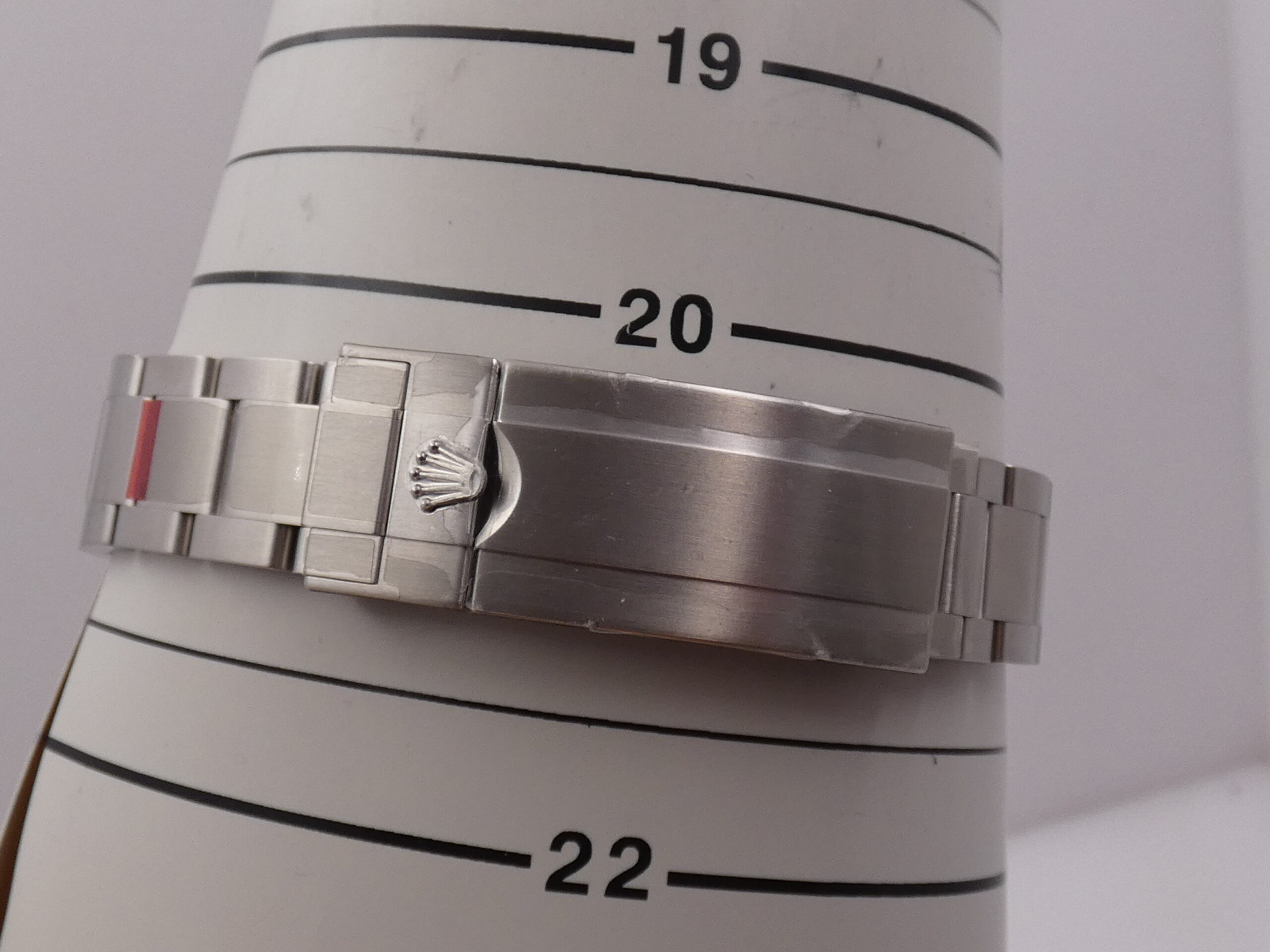Chiusura: deployante con flip lock di sicurezza e prolunga sub per poter indossare l’orologio sulla muta, originale Rolex; interamente ricoperta dalle pellicole originali