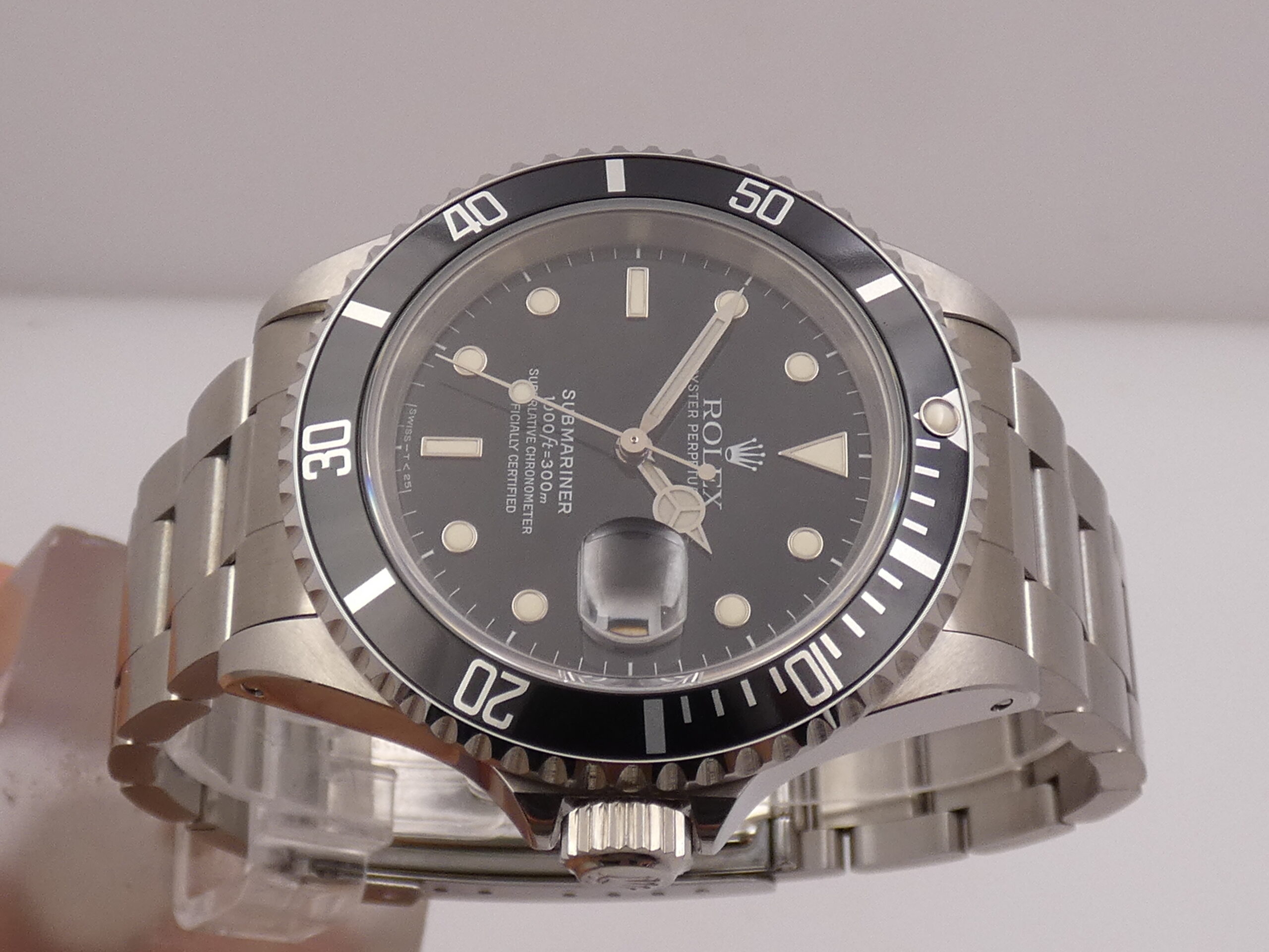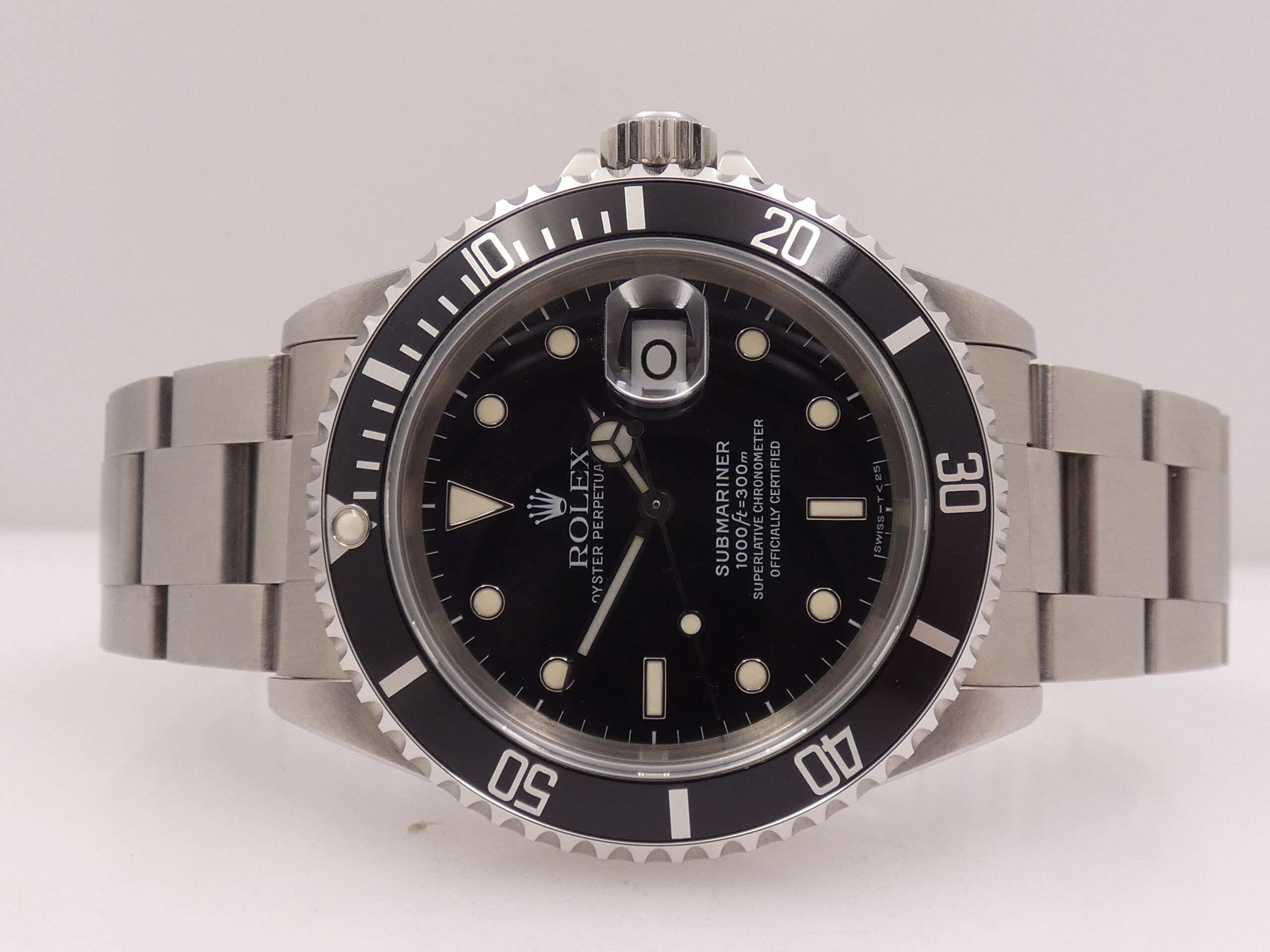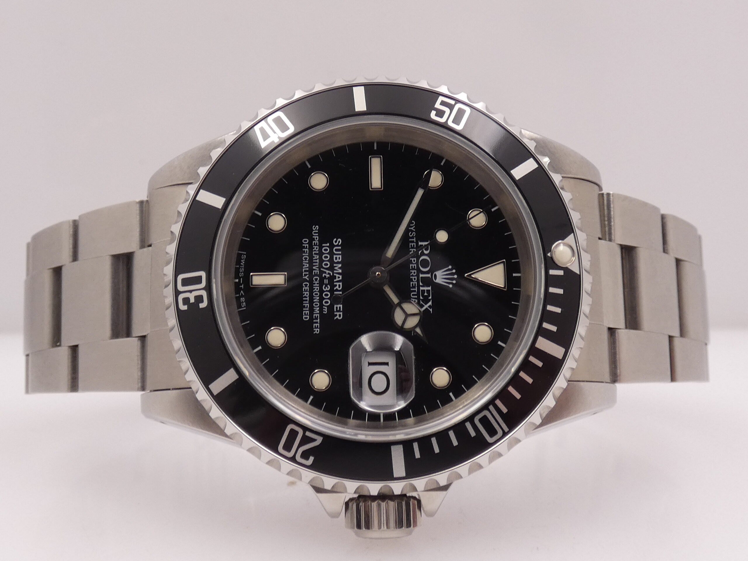 Dial: Black, with raised steel indexes, steel Mercedes hands, center seconds, date display at 3 o’clock with magnifying glass and quick-set crown, sixtieth scale, Rolex logo at 12 o’clock