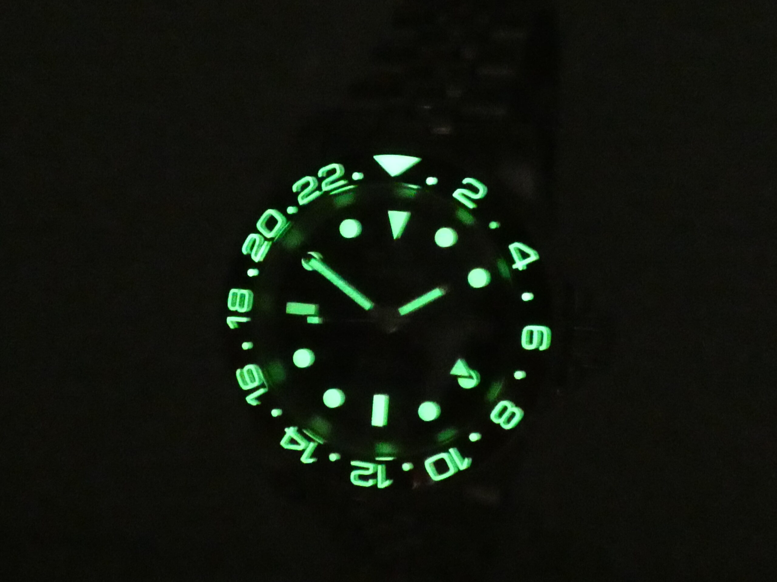 Bezel: Coke, with knurled profile for a better grip, unidirectional rotating bezel with 24-hour scale for setting the GMT