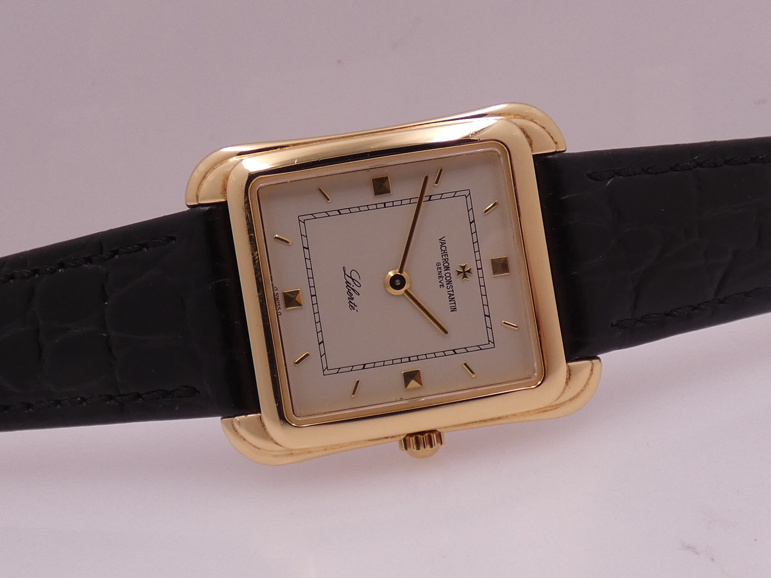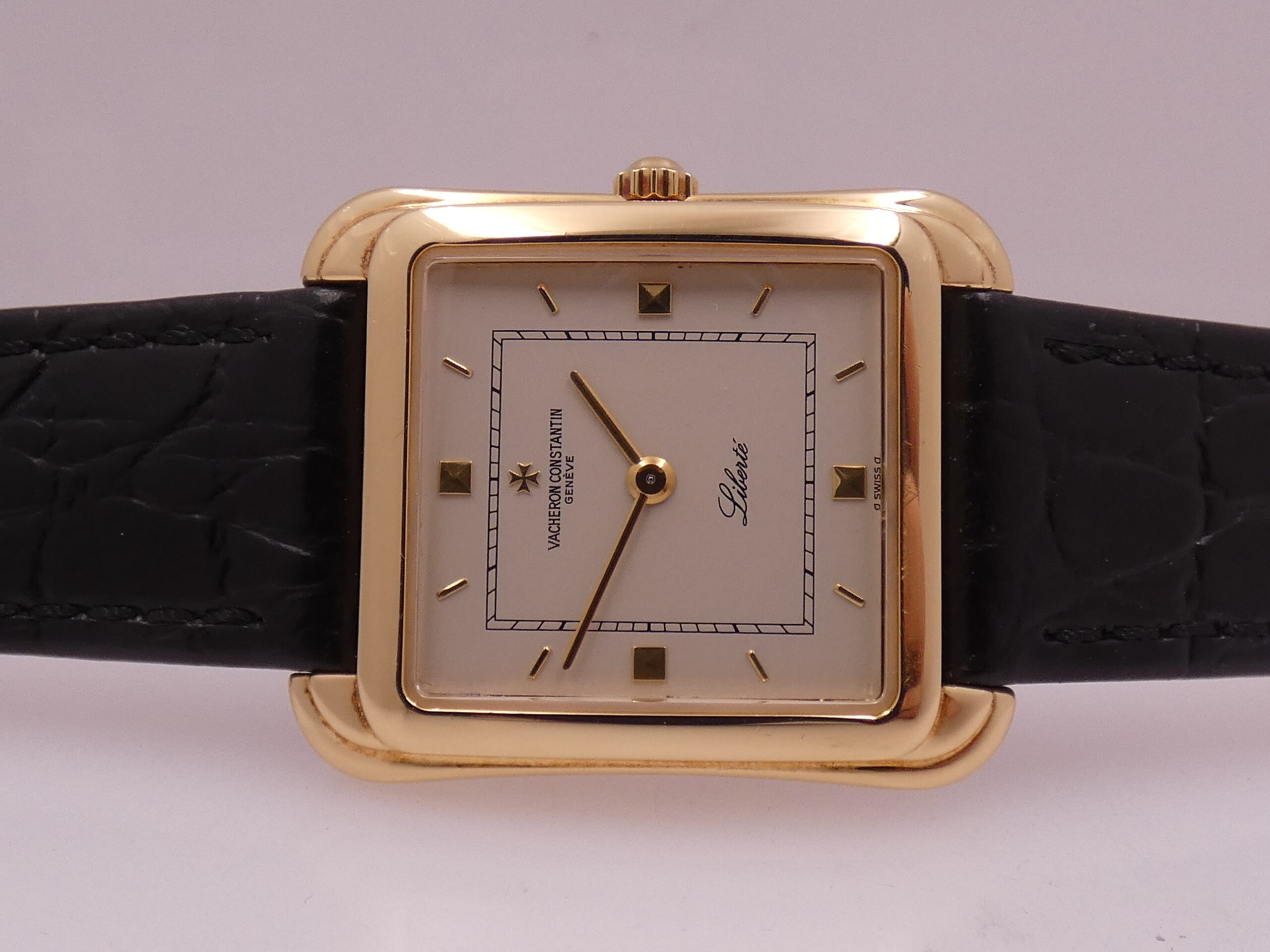 Quadrante: SIGMA, bianco/argentè, indici a barrette, geometrici a quarti in oro ed in rilievo, lancette a stilo, anch’esse in oro, scala sessantesimale Chemin De Fer, logo Vacheron Constatin al 12, con croce di Malta in oro ed in rilievo