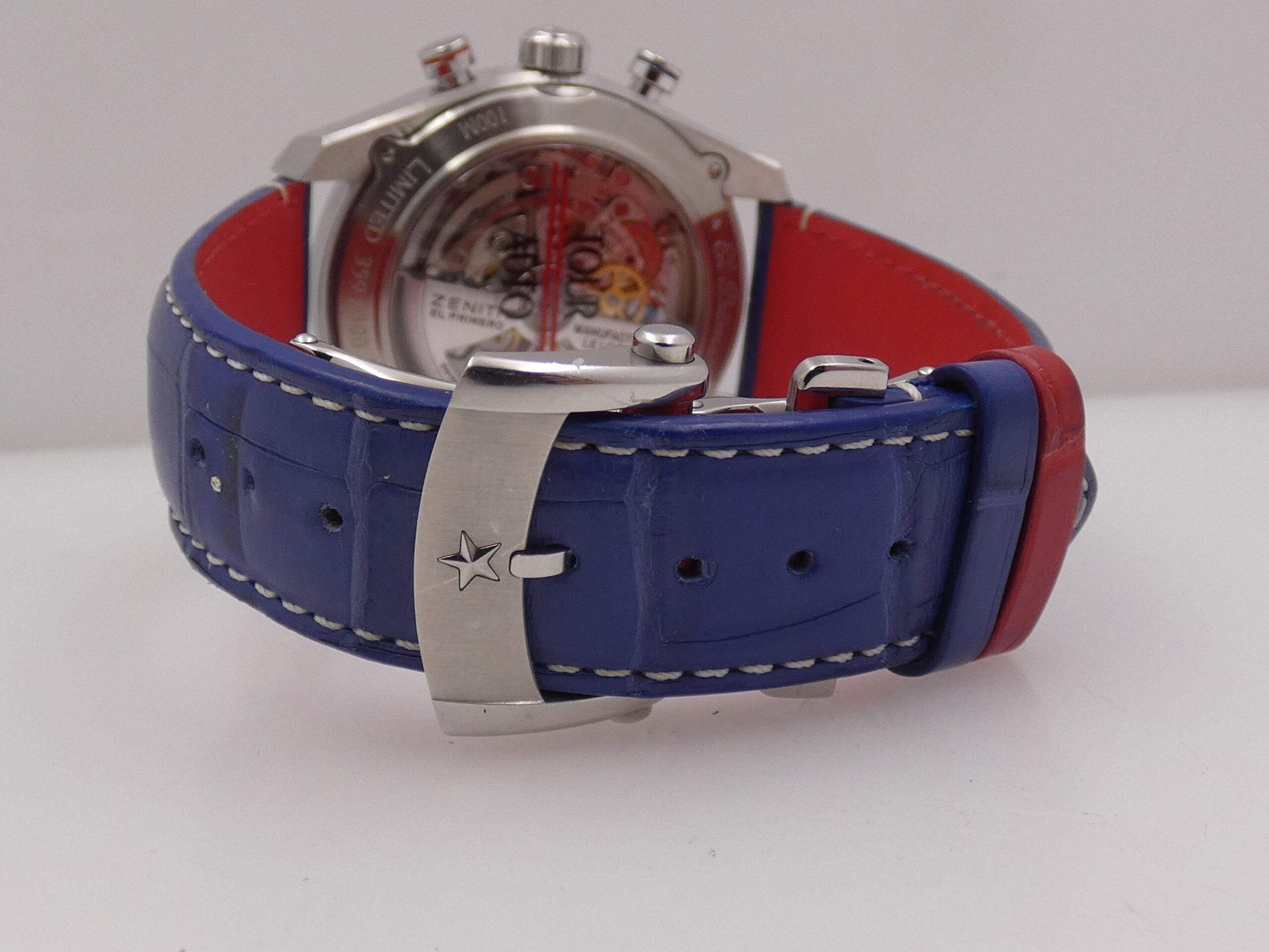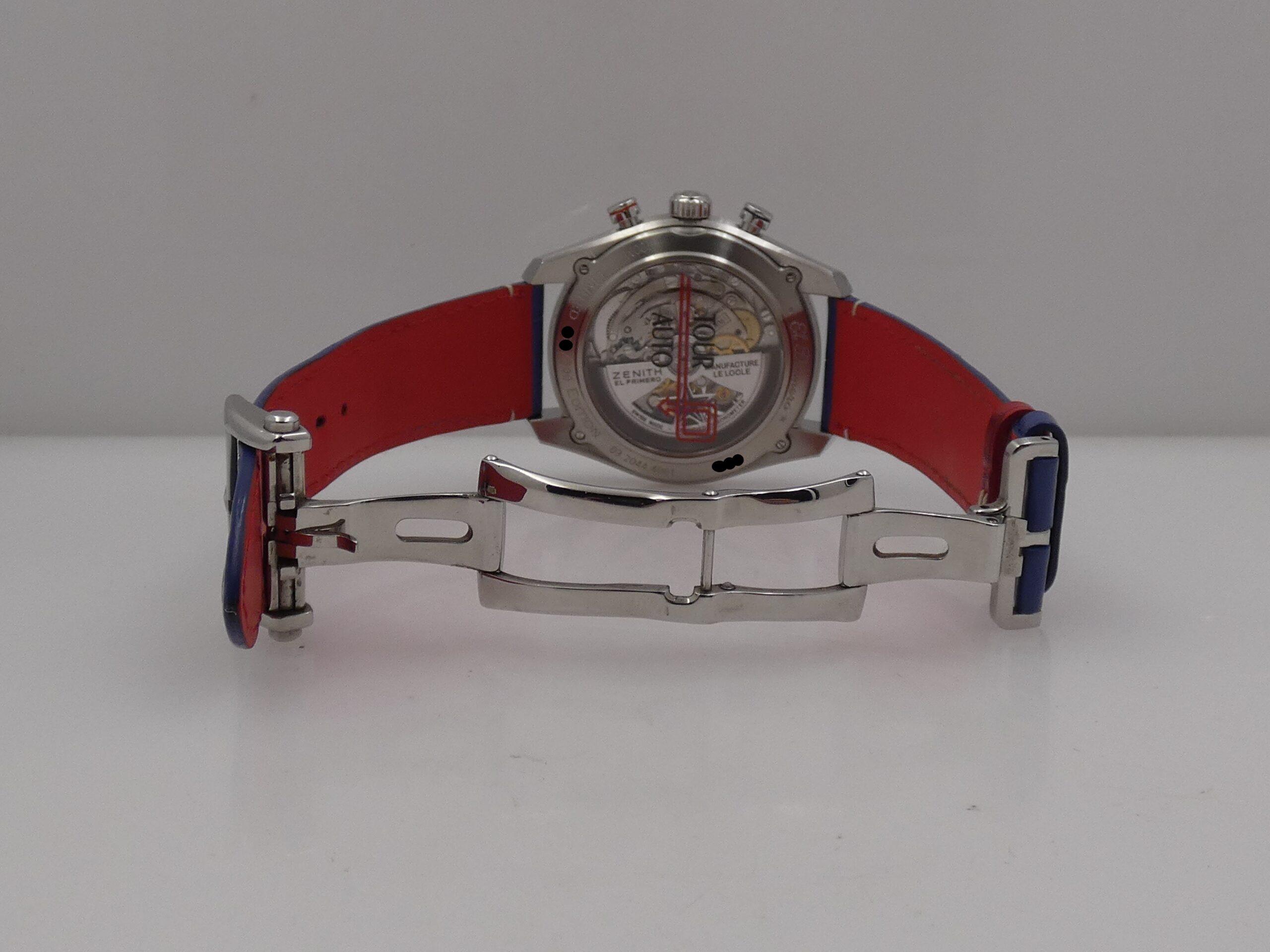 Movement: Zenith-manufactured self-winding mechanical movement, El Primero caliber 4061 with 31 jewels, column-wheel chronograph, COSC-certified chronometer.